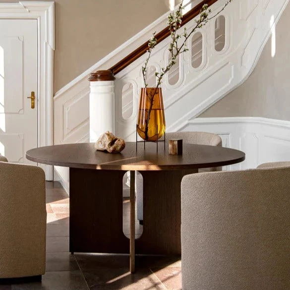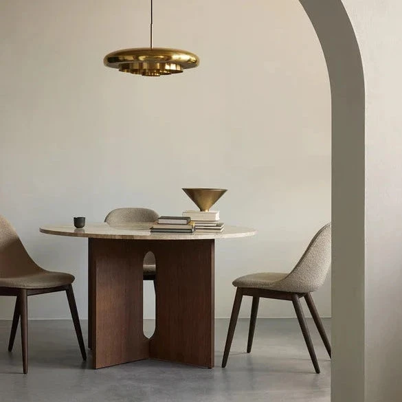 Like a magnificent monument, the Androgyne Dining Table pairs natural materials to striking effect. Evolving the collection further, the bold, confident take on a dining table amplifies the silhouette of the collections side table to grander proportions. A table not for the faint of heart, it makes a characterful accent in any space from a domestic dining room to a restaurant or other gathering point.