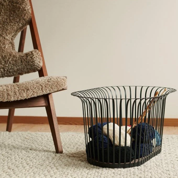 A modern storage solution with a traditionalist feel, the Ribbon Basket contrasts sleek powder coated steel with soft, inviting curves. Crafted with precision, vertically positioned metal strips are formed into a gently rounded lip that makes it easy to carry the basket from room to room.
