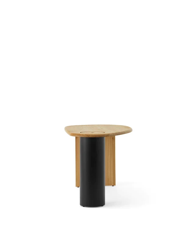 The Eclipse Desk is a celebration of materials and form. Named after its concave and convex form that resembles the illuminated passage of celestial bodies in the sky, the Fred Rigby design has a distinctive, asymmetrical silhouette that invites to touch. Available in solid oak, dark-oiled oak and oiled natural oak with a black painted leg, the tabletop is fitted with a lid that lifts to reveal hidden storage within the supportive steel column, ensuring desk space remains free of clutter.