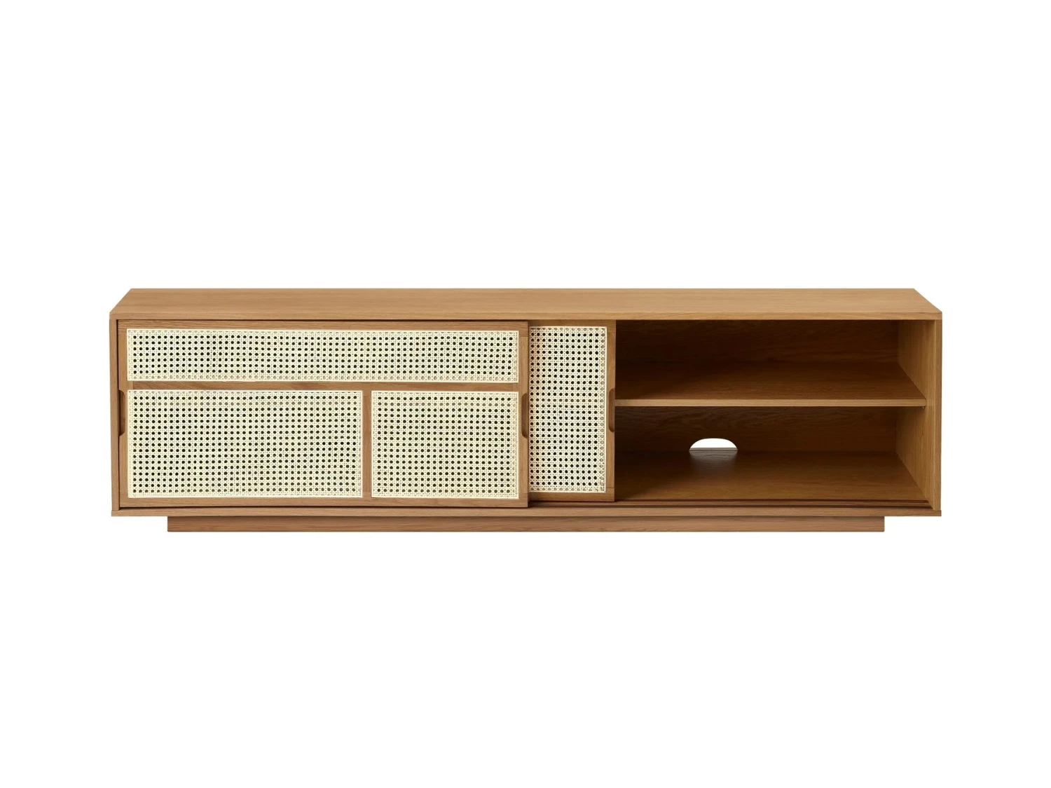 Oak veneered mdf, natural rattan. Legs: solid oak with adjustable graven plastic feet.