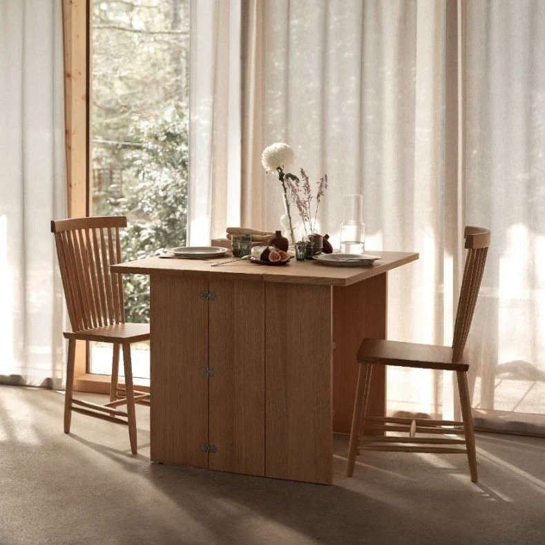 Flip down one side, flip down two sides, fold in the supports. Choose your desired width: 90, 60 or 30 centimetres. The original Flip Table was a three-in-one. Now the flexibility of Jesper Sthls design gets even greater with the options of 3 different lengths. Use the Flip Table XS with a 90 centimetres width and length as a desk for work or a sideboard, making it perfectly square when fully unfolded. Opt for the original Flip Table M in a 1,6-meter version for a larger setting.