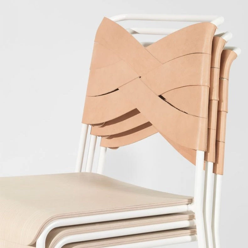 Lisa Hilland was inspired by the traditional hunter chair, with its frame in metal, seat in wood, and backrest in leather when designing her Torso chair. A comfortable and functional chair with an eye-catching backrest in plaited leather.