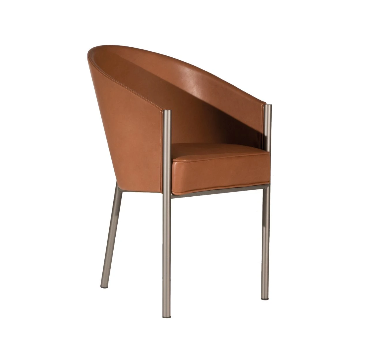 Driade Costes Leather Armchairs Philippe Starck – Tubular frame in fine satin steel painted in titanium colour using nanotechnological products based on metal alloys and ceramics.