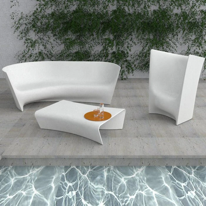 An outdoor sofa designed for the old aged and very noble art of conversation. In this sofa everyone can find his ideal depth of seating position and posture: more composed or more gently relaxed, depending on ones temperament or the circumstances of the day. Ludovica and Roberto Palomba wanted Grand Pli to open up like an embrace and be able to seat up to four people, and then accommodate Pli armchairs and Piaff tables in the projection of its curve, in a sort of controlled void.