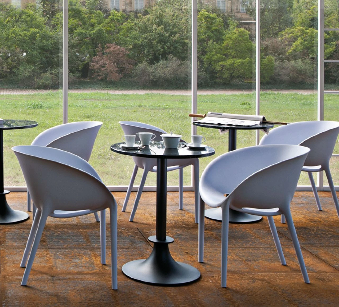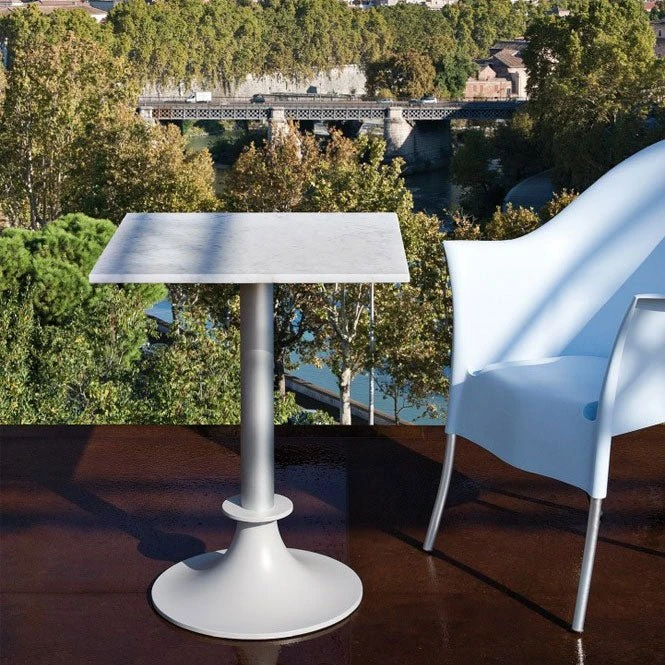 Driade Lord Yi Marble Top Table Philippe Starck – successful completion to the generous shapes of the famous lord yo easychair, lord yi table is surprising for its simplicity and the clear composition of the parties, deliberately signaled in his tripartite division of base, shaft and top.