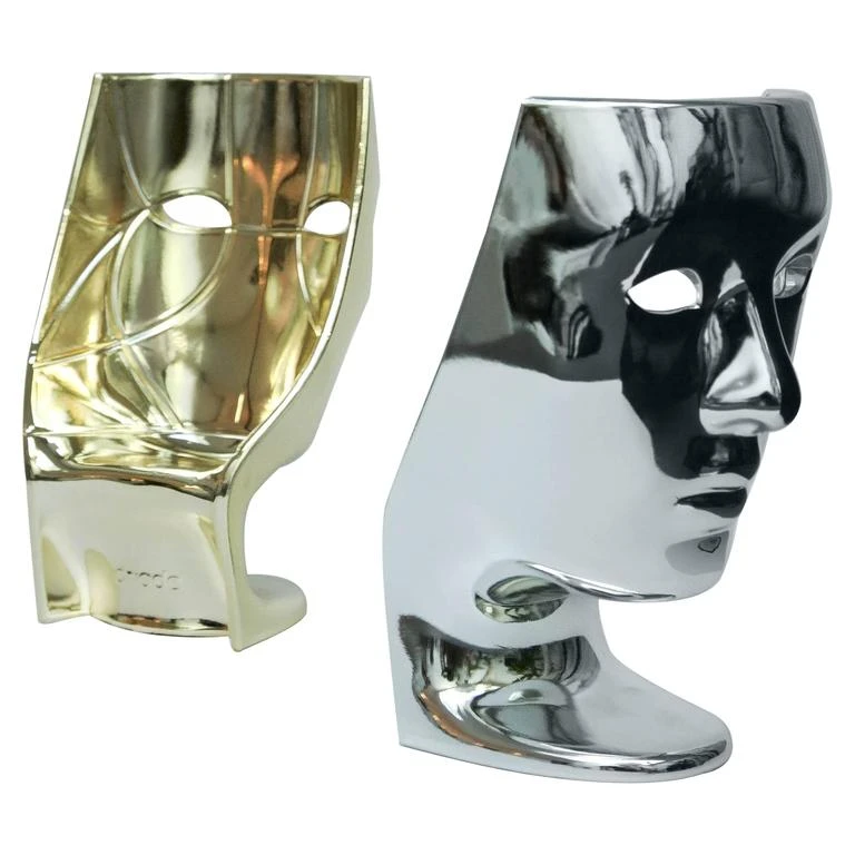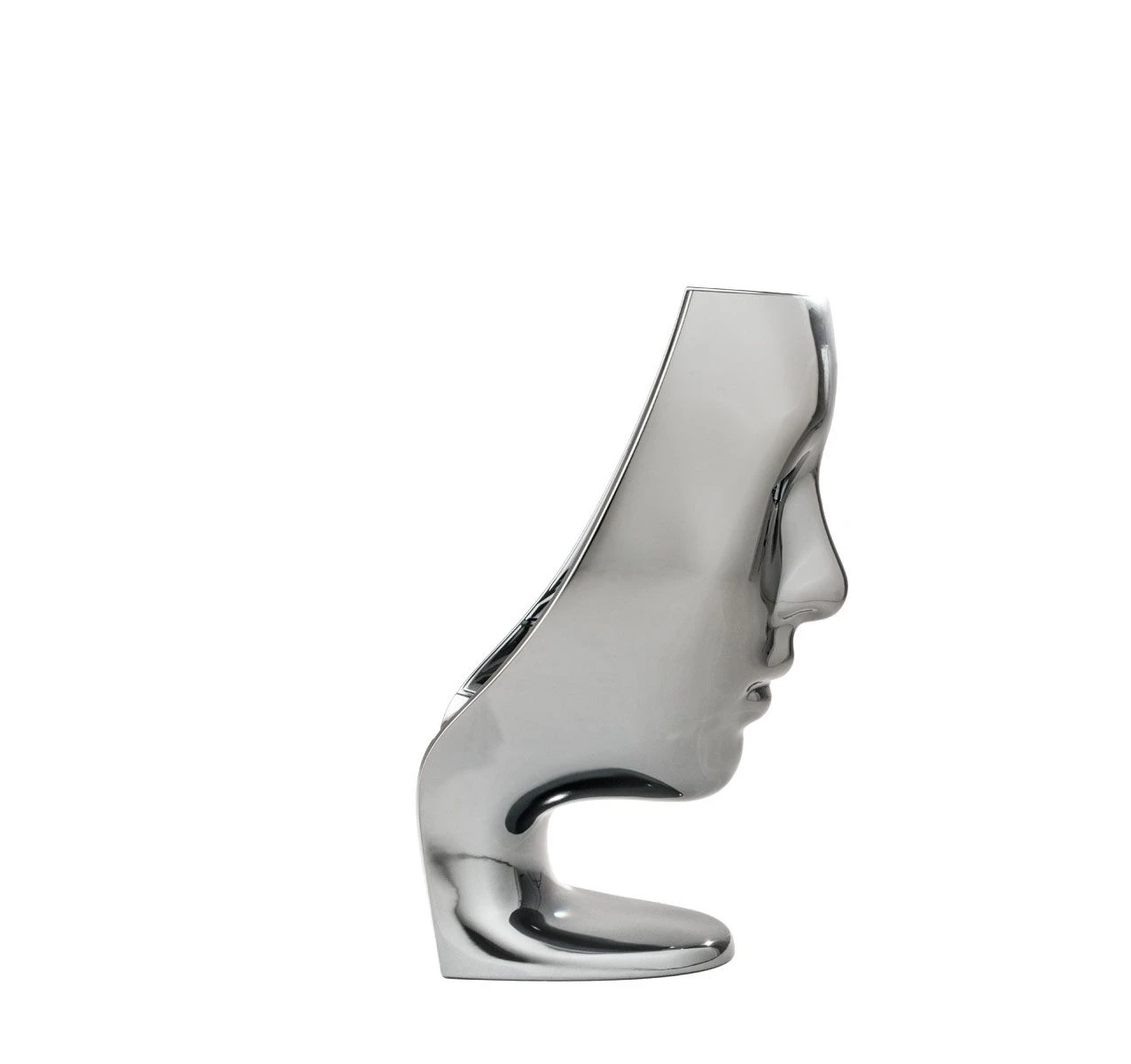 Driade Nemo Chair Fabio Novembre Silver – furniture design to tell intense and fascinating stories in which the protagonist is often the human figure. this human figure is capable of becoming abstract and universal, able to propose a mythic beauty as occurred in greek art. so that nemo, a face with classic features, is hollowed out to create an inhabitable space. the result is a head-armchair to be lived from the inside. like a mask, it simultaneously conceals and reveals its inhabitant.