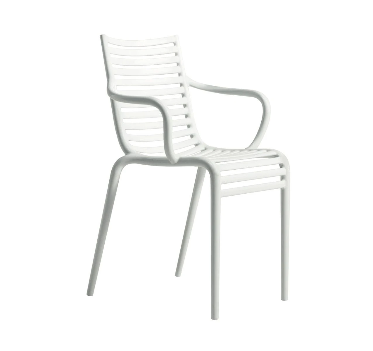 Driade Pip-e Armchair 4pcs Philippe Starck – even a classical image, as a railed chair, in the hands of Philippe Starck, acquires a particular connotation. the sequence of horizontal elements which creates the seat and the back definetly takes on a strong chiaroscuro and accompanies the bending of the knees.