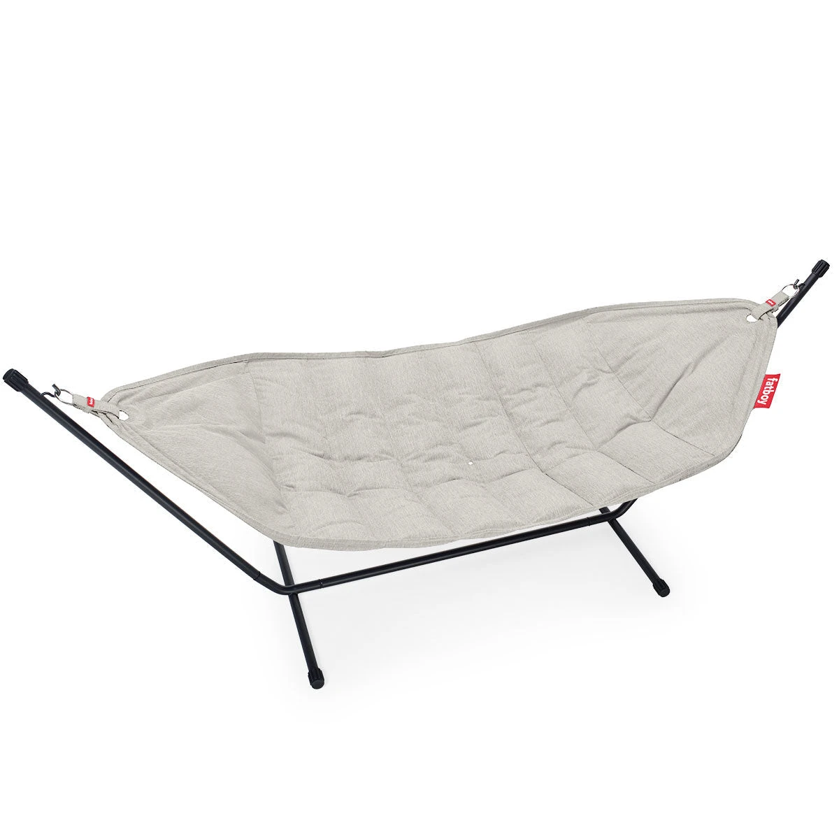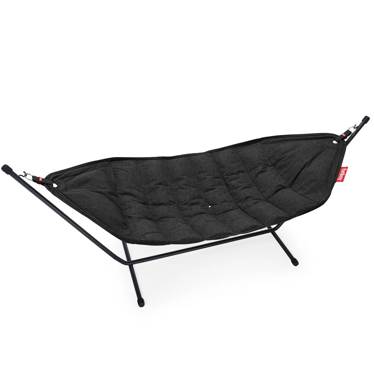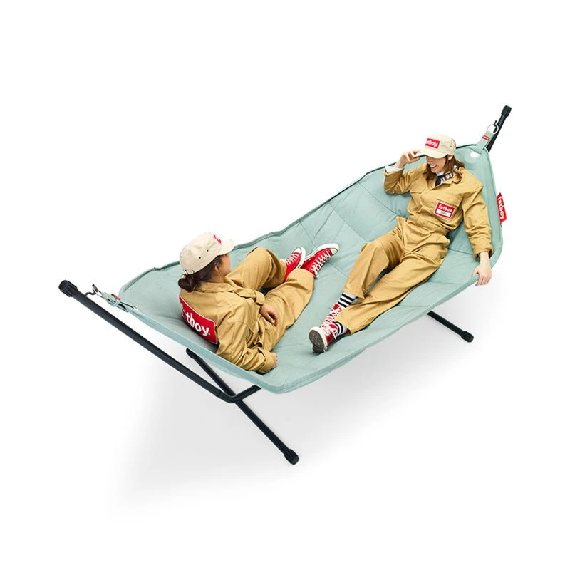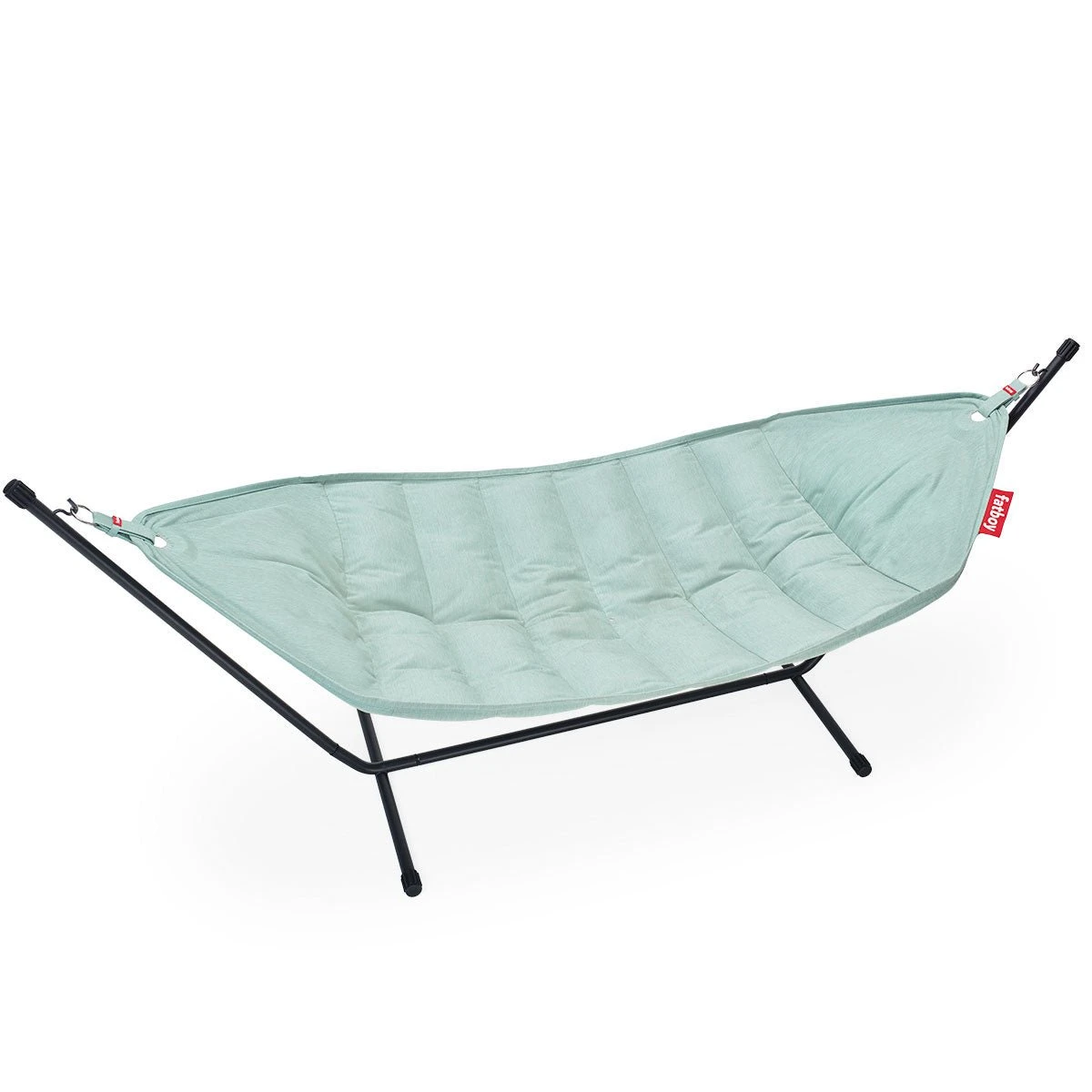 The comfortable Headdemock Superb outdoor hammock for two people (up to 150 kilos) comes with a metal frame standard. Adjustable in height and easy to assemble. The actual hammock is made of strong, UV- and stain resistant Olefin fabric, available in different colours. In need of additional accessories or extra parts for your garden hammock for two? Just order some extra straps, caps or rings.