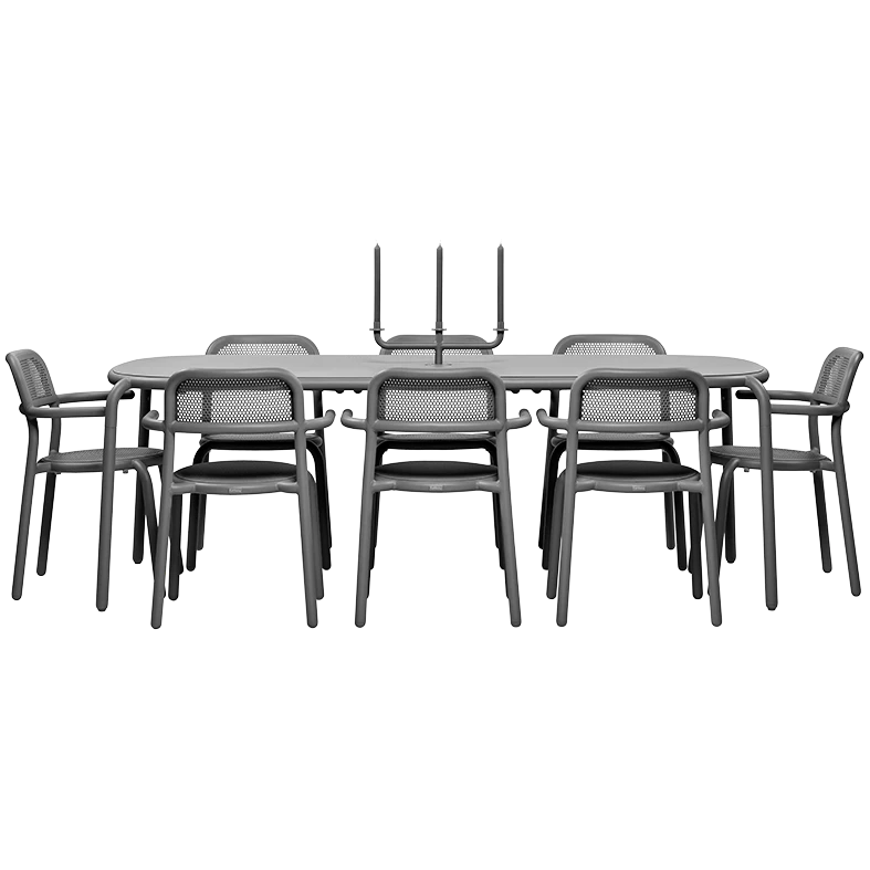 Armchair is stainless, colorfast, and resistant to all weather types. Feel free to lift the Ton Armchair and discover how light it is. Comes in handy, as you can easily stack up to four chairs.
