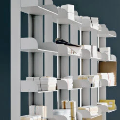 Wall mirror in 5 mm-thick semi-reective glass comprising 4 single curved elements in 6 mm-thick semi-reective black back-painted glass. Metal frame painted matt black.