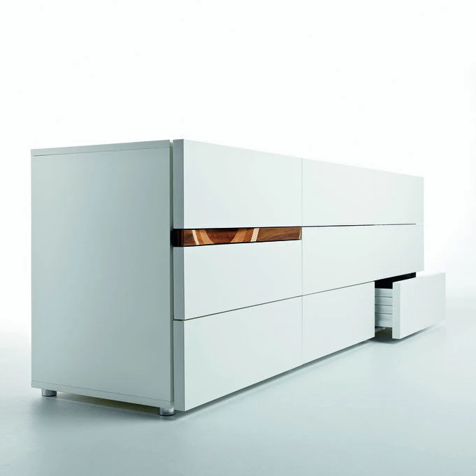 Fronts in ultralight MDF aluminum spacer, drawers in extruded aluminum.