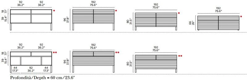 Size: H 66 cm + Base H 16/32 cm, L 192 cm, Dept 60 cm.