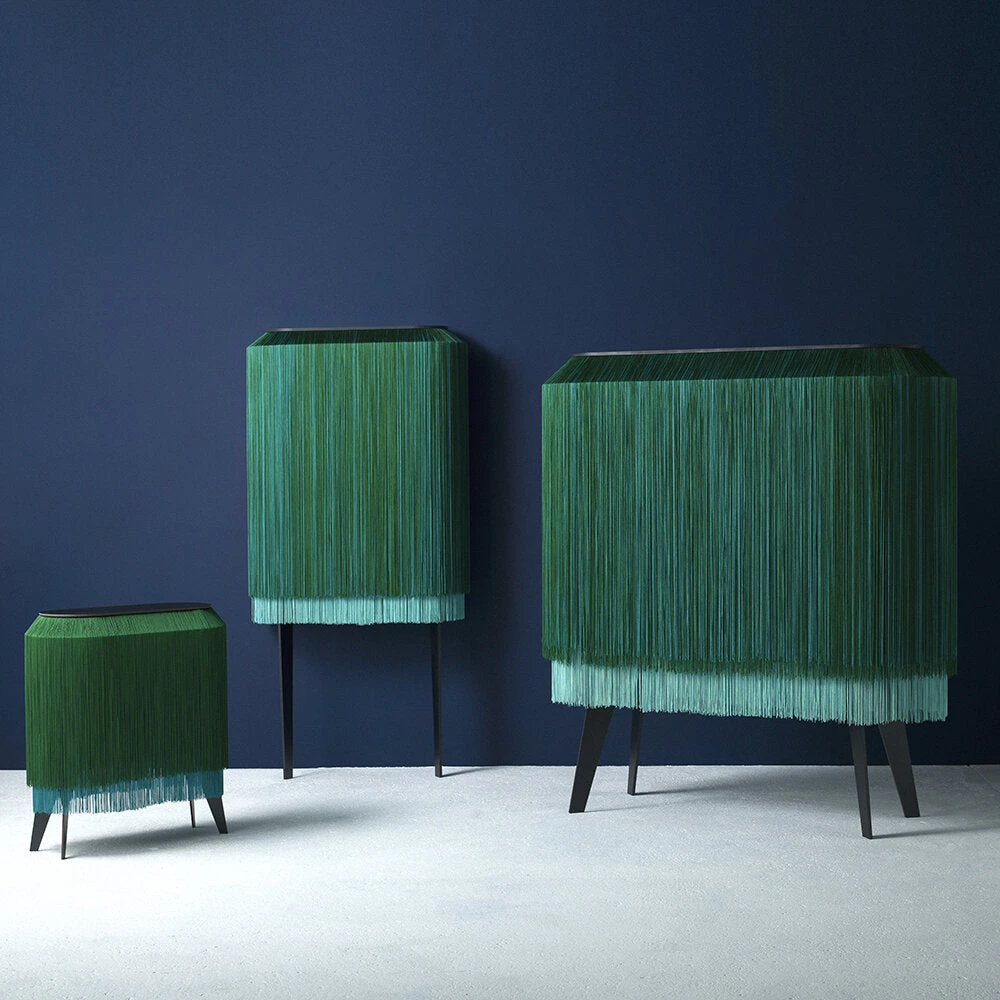 With the Alpaga family, ibride invents fluid storage in a soft show/hide concept. A new relationship is established with the furniture, a tactile emotion. Adorned with long legs, the elegant Lady Alpaga hides behind her silky coat as many bottles, drinks, dishes or accessories. Intimacy is extracted from the gaze, draped in caressing fringes. And Lady Alpaga’s confident femininity struts from the bedroom to the living room in a vibrant intensity of colour.