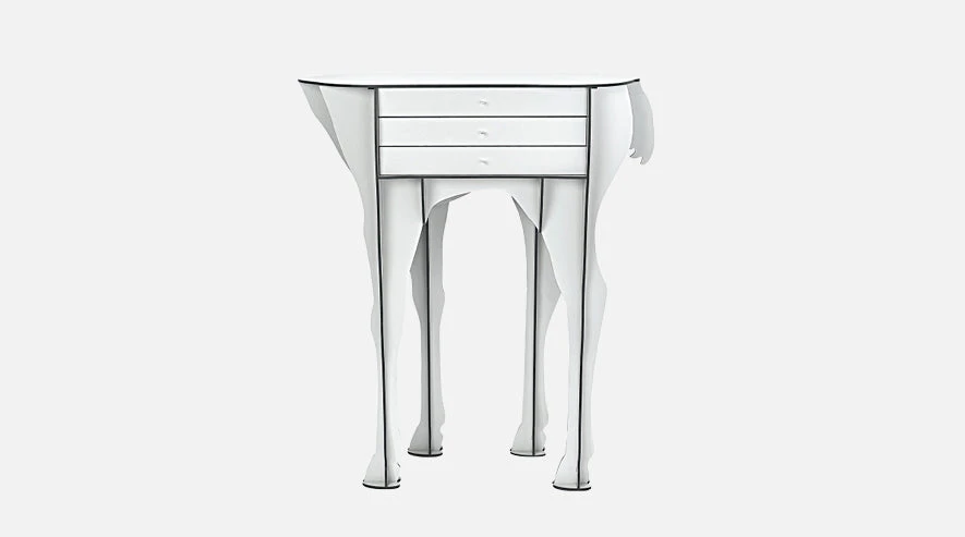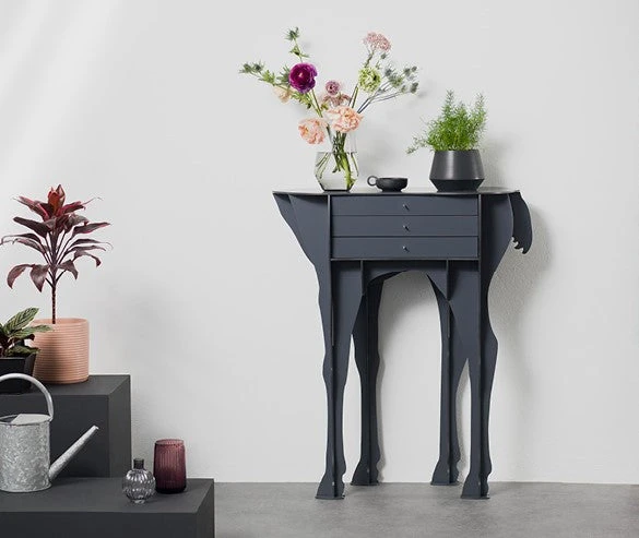 A discreet neighbor of the ibride workshop, the deer is an elusive animal whose surreptitiously detected agile silhouette never ceases to affect one’s glance. As its effigy, the Bambi dresser, perfect for hallways and entrances, substantiates a little of this beloved animal’s freshness and fragility.