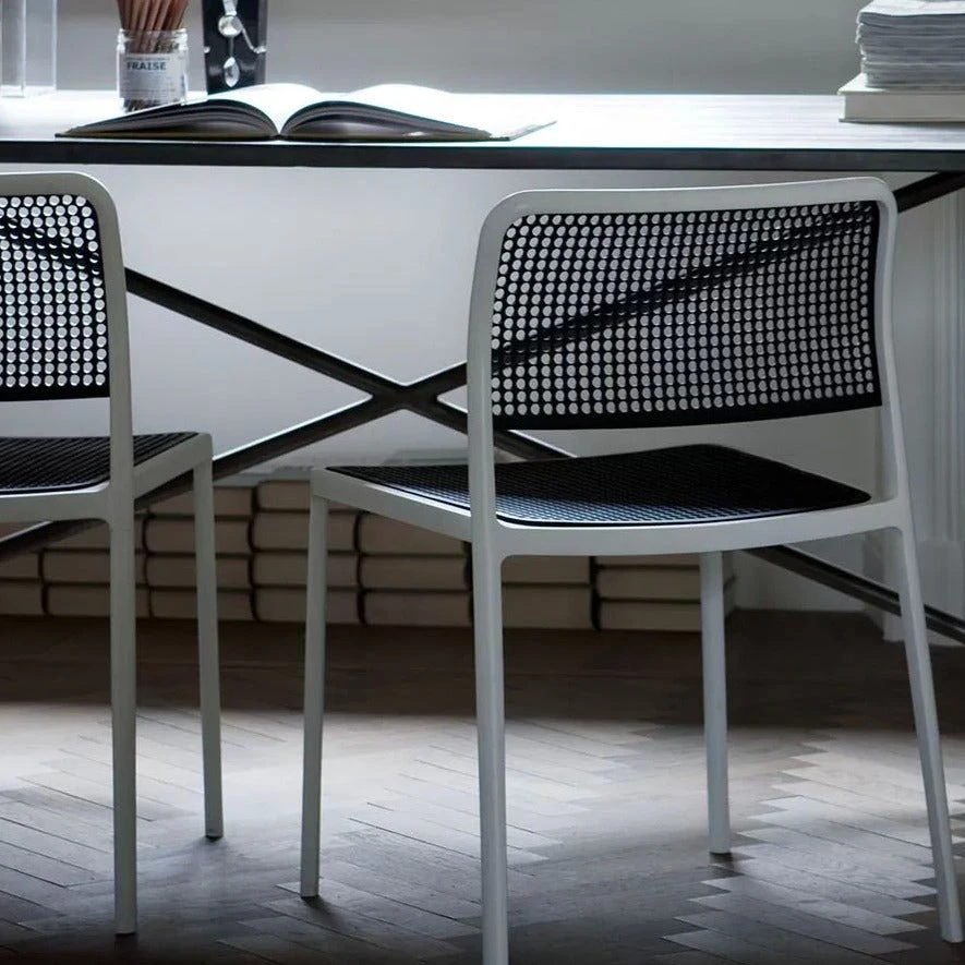 Audrey is a versatile and contemporary chair which because of its simple, clean lines obtained through a special die-casting process is composed of only two parts and made without welding.