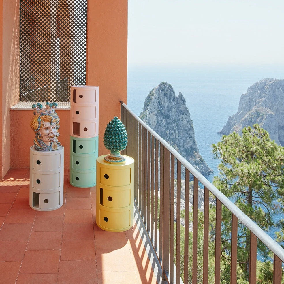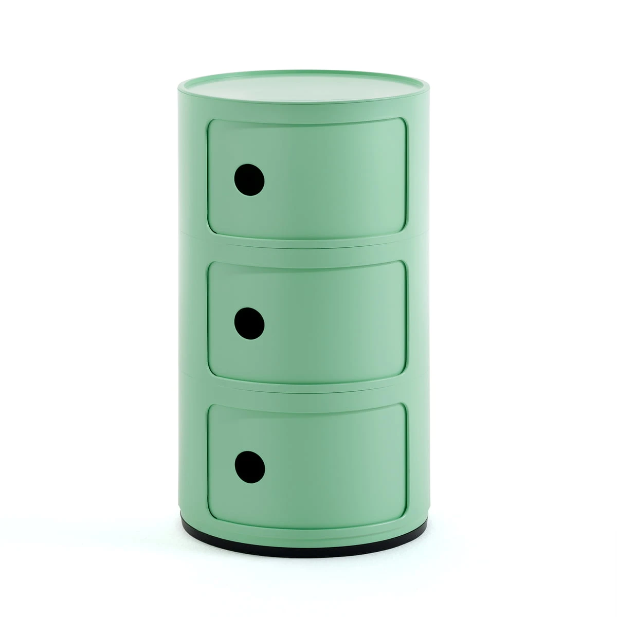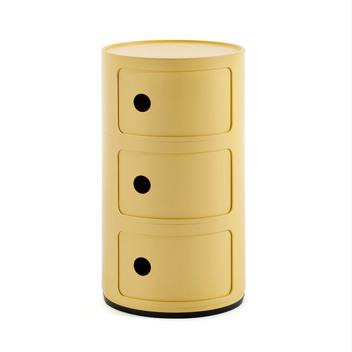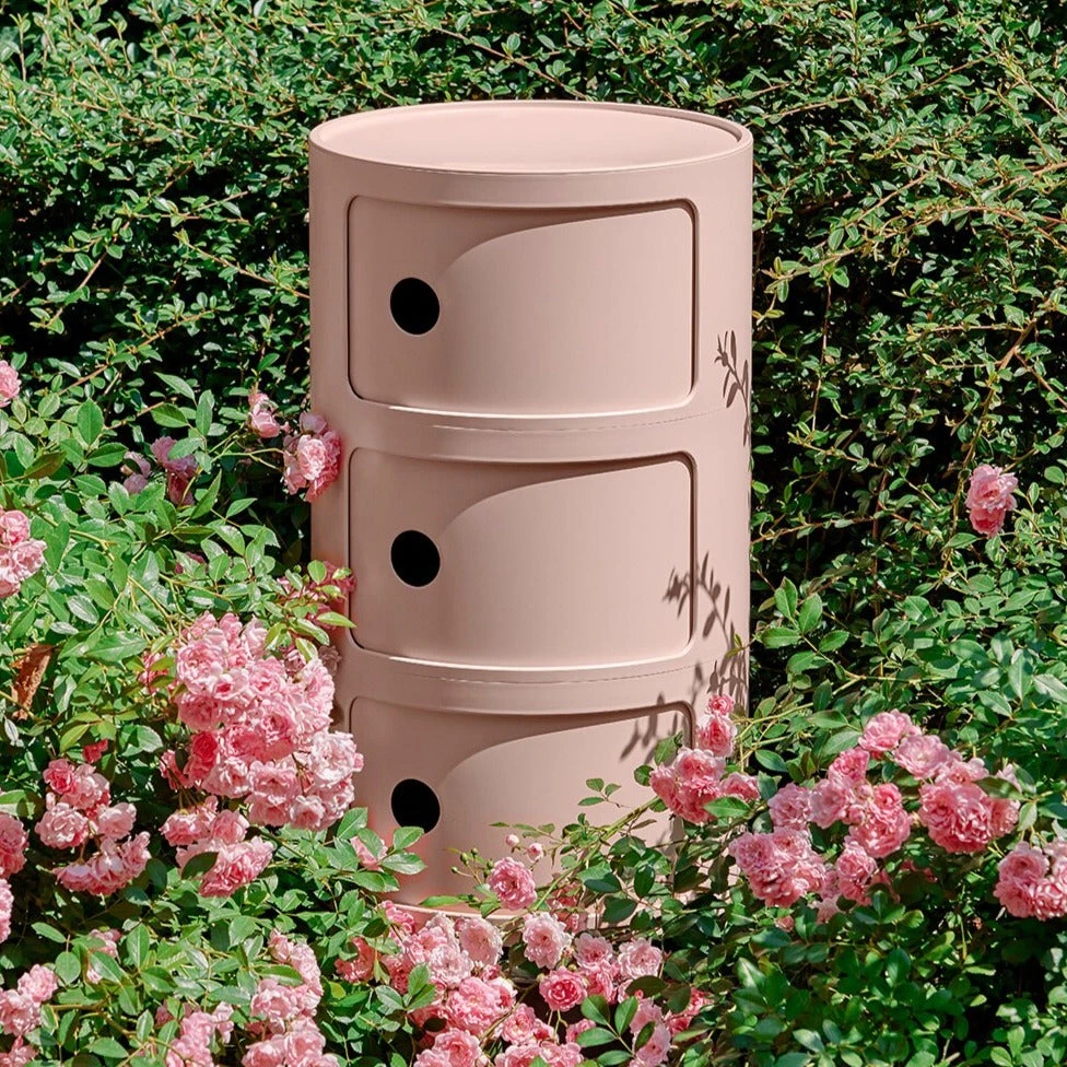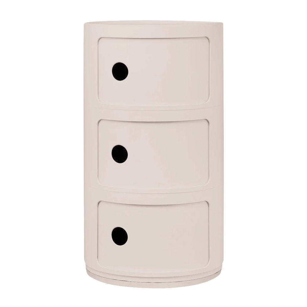 Modular elements were designed to meet various needs and to fit into any room in your home: bathroom, bedroom, kitchen or living room. The design solution that animates the Modular system is the elementary and solid vertical overlapping of interlocking single pieces to create practical storage furniture. Available round and square, Modular pieces can be rested on wheels.