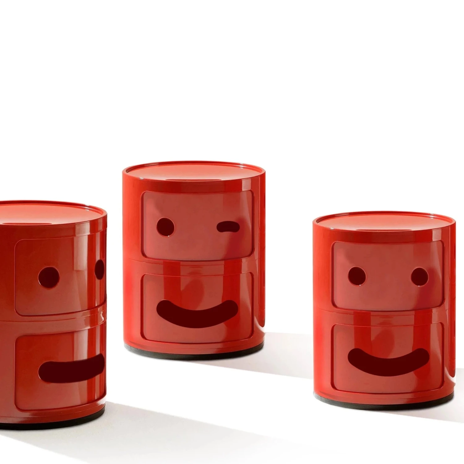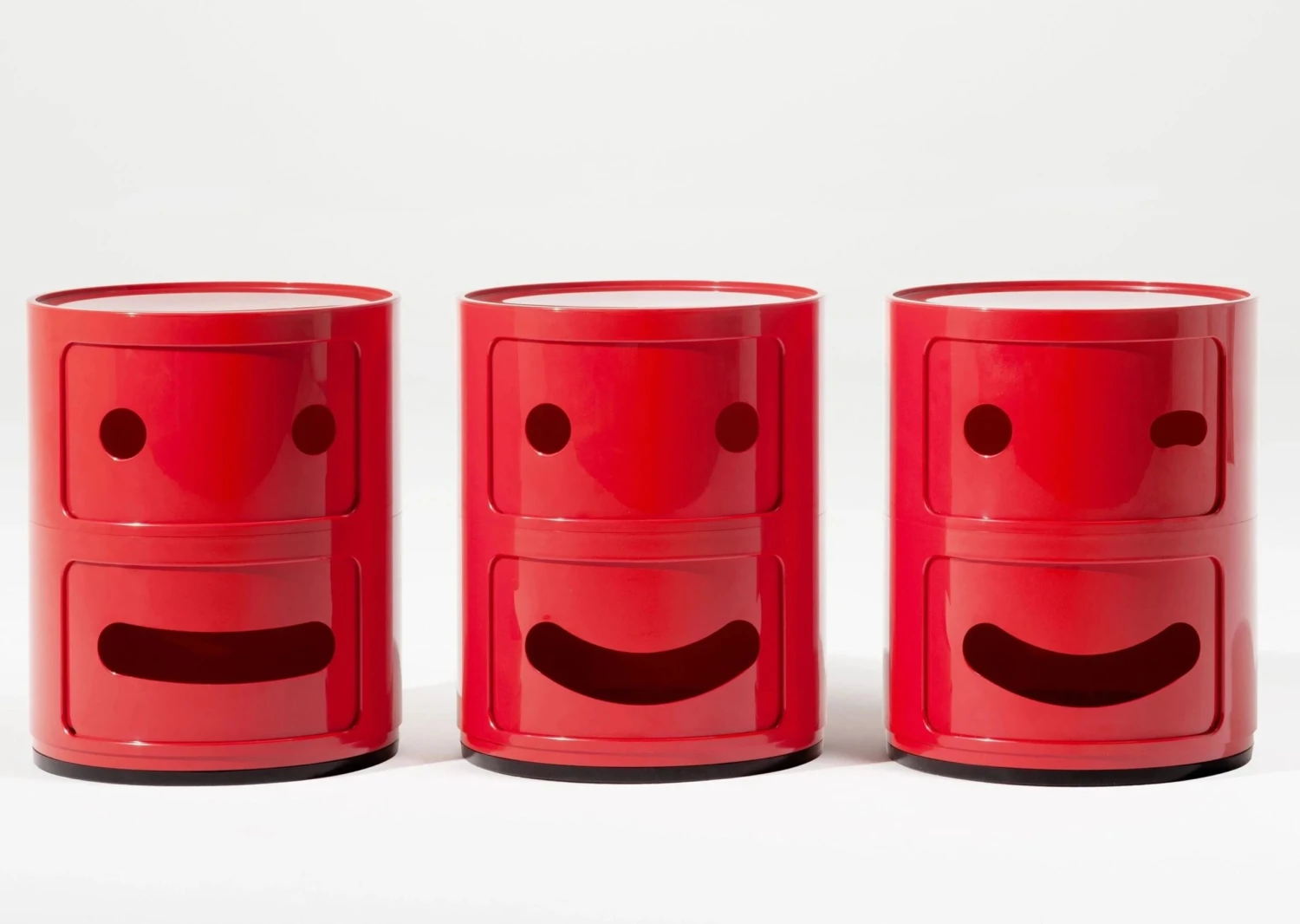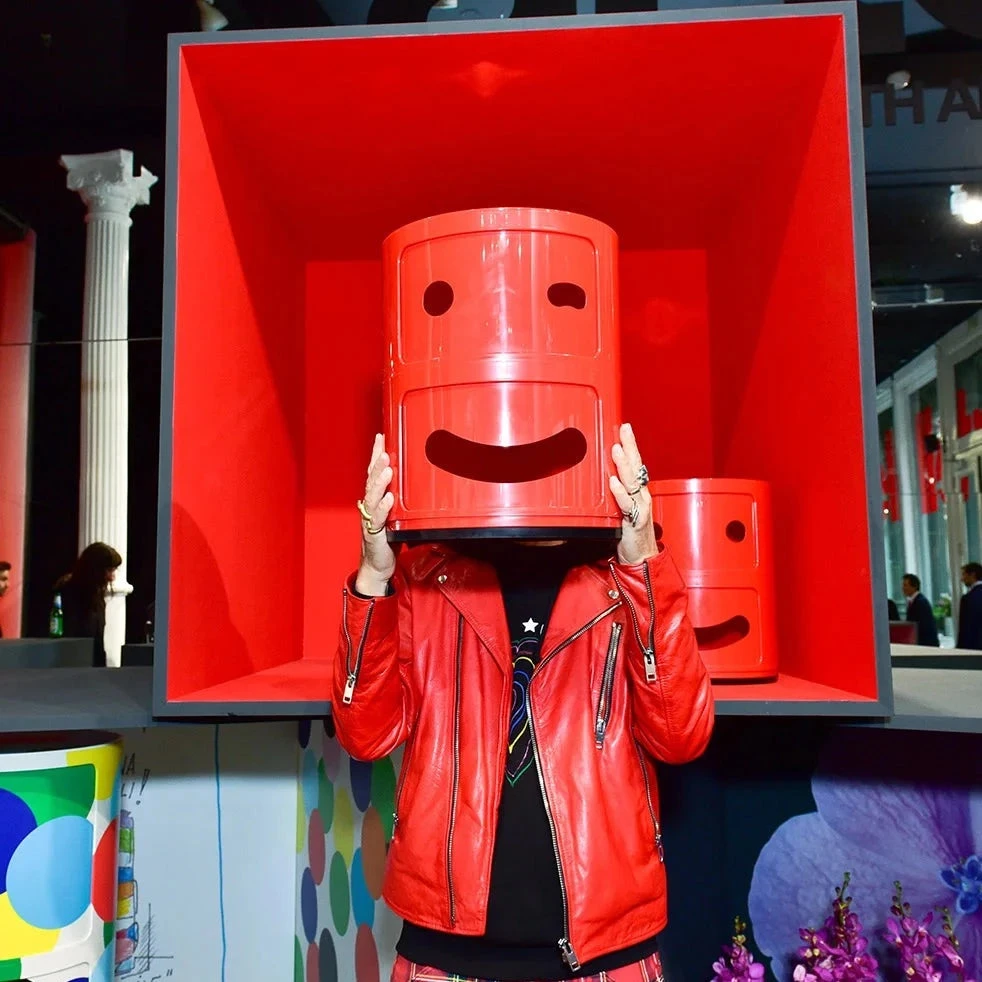Fabio Novembre re-interprets the icon created by Anna Castelli Ferrieri: Componibilis classic round hole has been reinterpreted into a winking eye, a nod to the emojis of today.