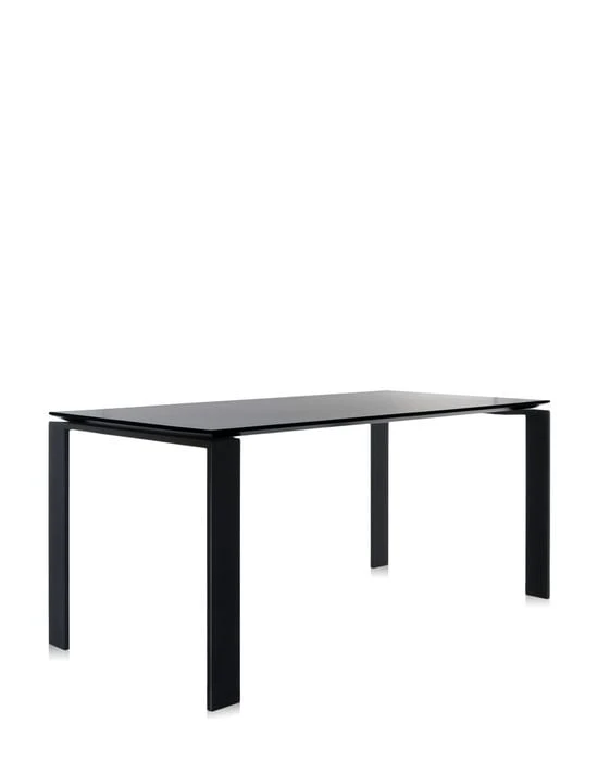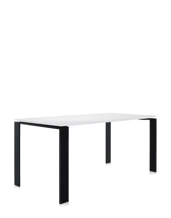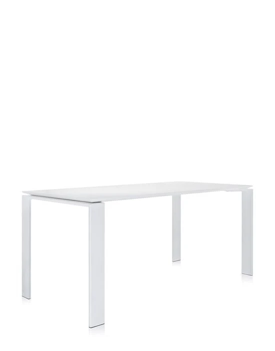 Four is available in varnished steel and a 2.5 cm thick table top in stratified laminate, white/aluminium and aluminium/aluminium comes with a satin-finish aluminium table top