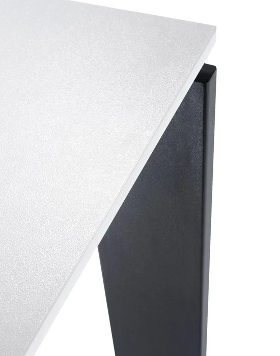 This functional and refined table also has a strict geometric design. Thanks to the elegant design solution, the position of the slim table top allows for the convenient positioning of drawers or storage furnishings for computer hardware. They can be placed side-by-side to form office workstations. Four is available with a painted steel body and a 2.5 cm thick table top in stratified laminate.