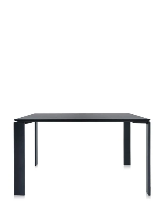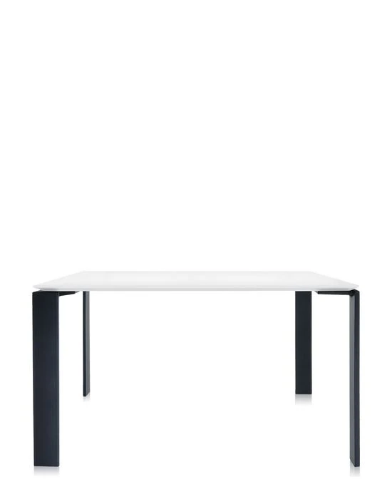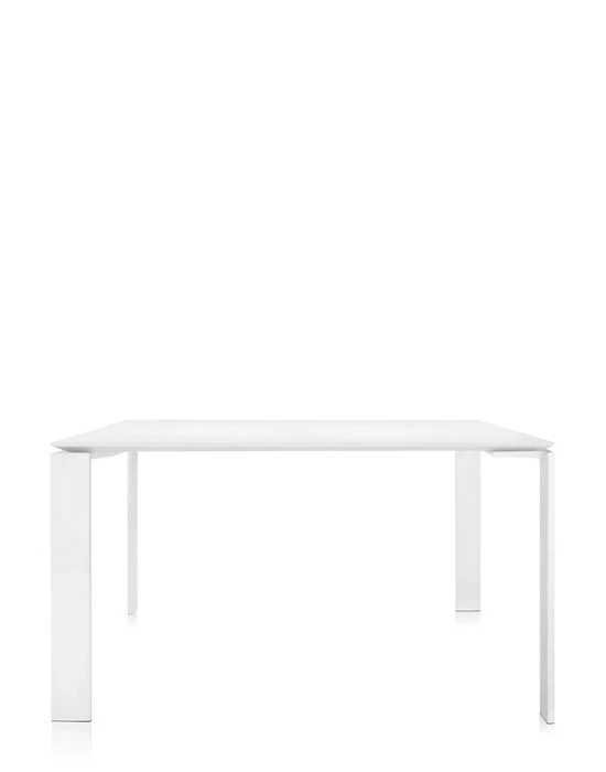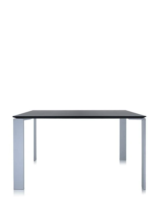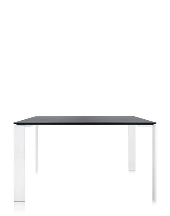 Four is available in varnished steel and a 2.5 cm thick table top in stratified laminate, white/aluminium table top