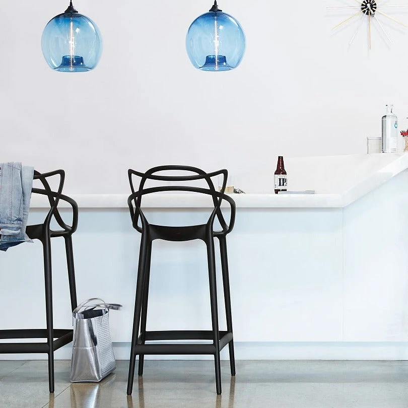 In the stool version of the Masters chair, the legs lengthen and the seat becomes more compact, but the unmistakable graphic style of the structure, created by interweaving the silhouettes of three iconic chairs, remains the same. Ideal for both domestic and contract use, the Masters Stool also lives perfectly outdoors.