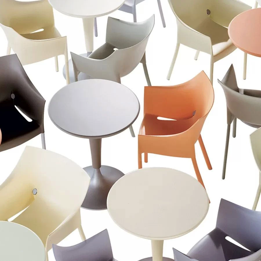 The scratch-proof painted surface and tapered central leg made of plastic and aluminium let Dr. NA live separately with the small armchair to form an ideal dual concept.