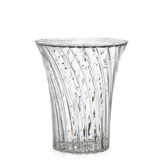 “Tokujin Yoshioka’s new Sparkle stool and table collection are as striking as a brilliant ray of sunlight. The plastic’s unique pleating (both inside and out) is reflected in the end result: two new jewels for the home, that look like precious gems… diamonds or sapphires, emeralds, topaz or rubies, depending on the colour chosen. Can also be used outdoors and are scratch and impact-resistant.”