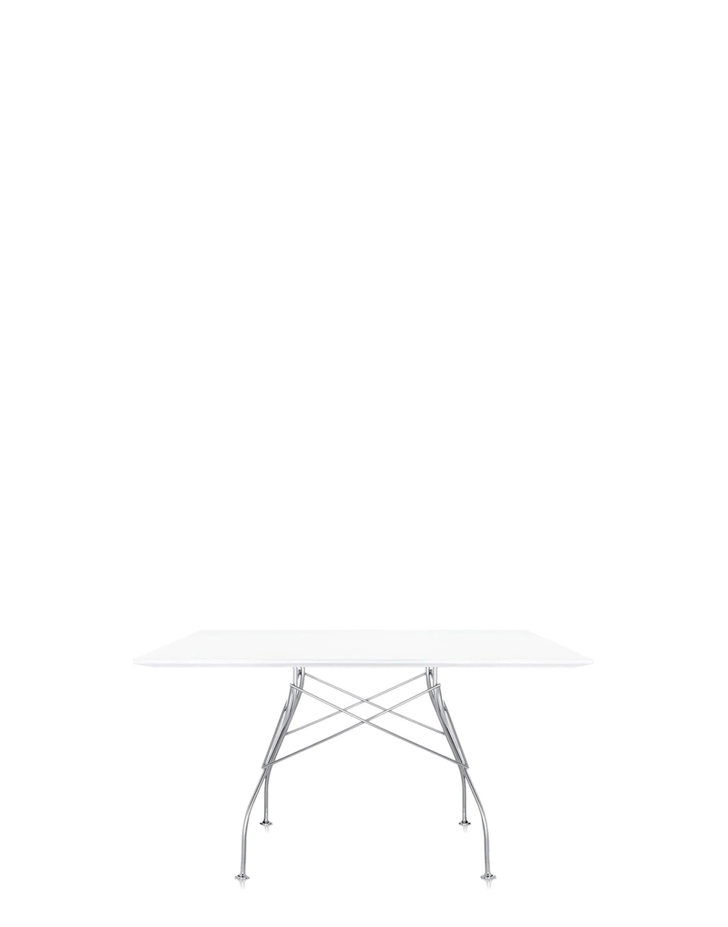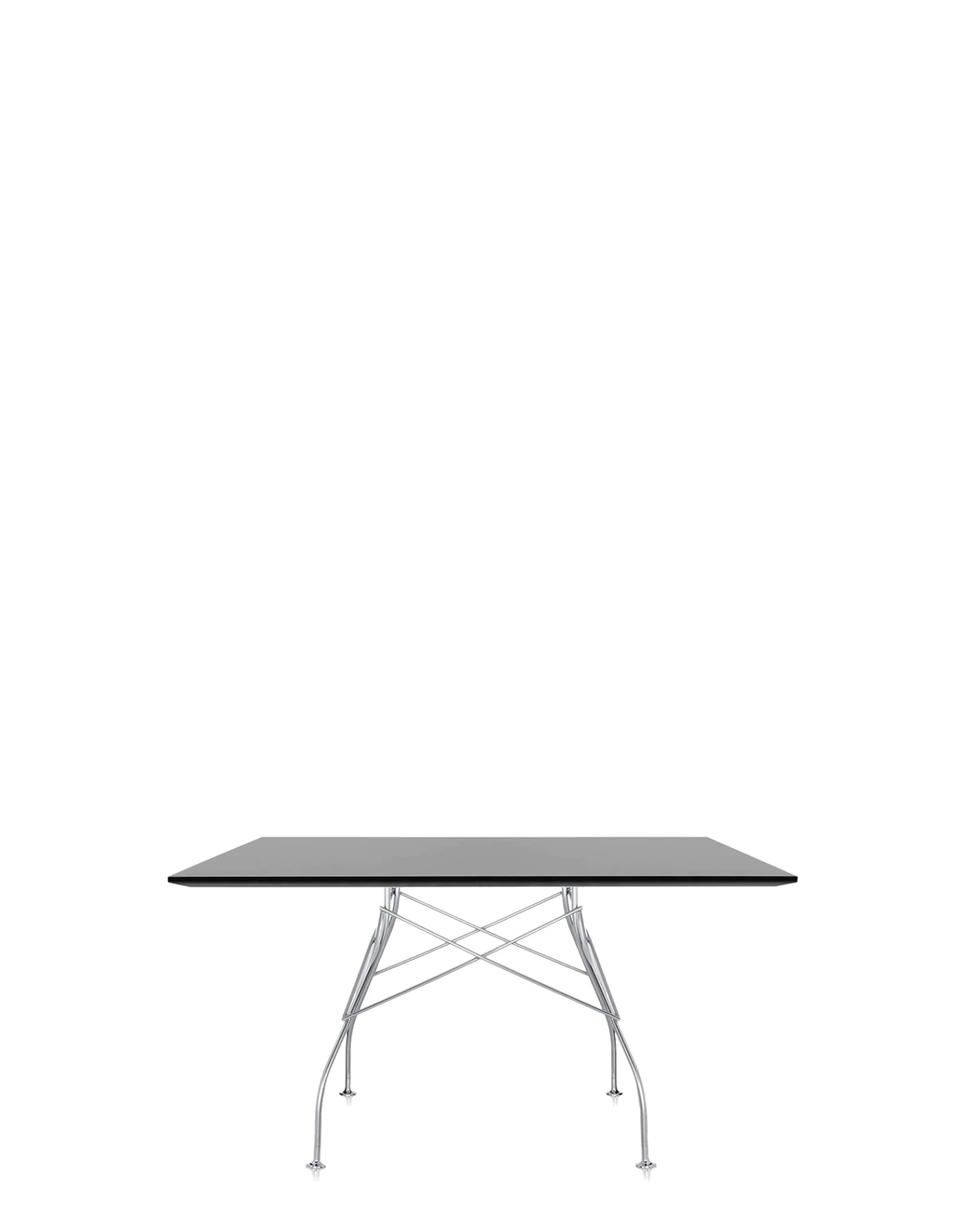 A collection of tables ideal both for the home and the office, characterised by a sophisticated design and elegant finishes. The light, chromed steel structure is particular as it features a crisscross element which connects the legs on each of the four sides to support a polished polyester or laminate top. The collection comes in square, oval and round versions (packed into a practical flat package) and in three elegant colours: black, white and red. Easily combined with other items, the square tables can bring work surfaces to life even in the most prominent areas of the office, such as the meeting room.