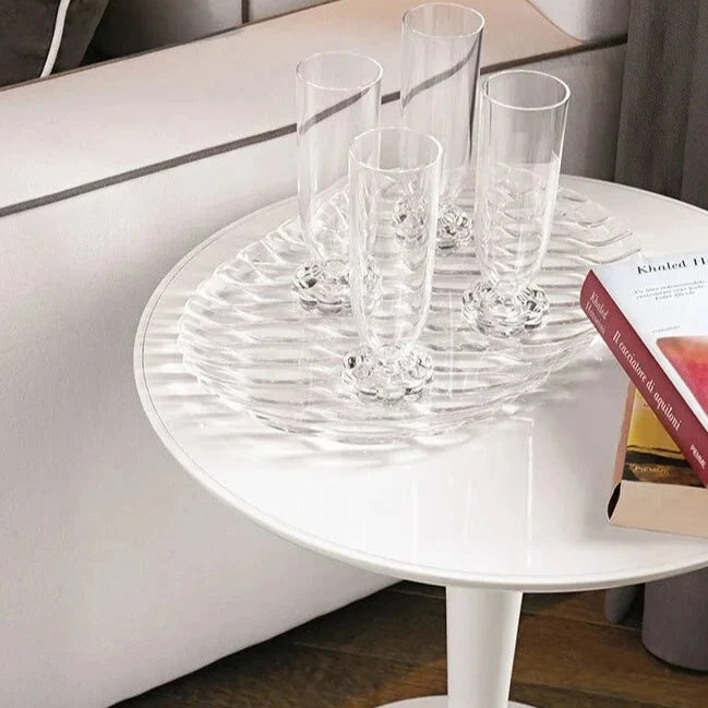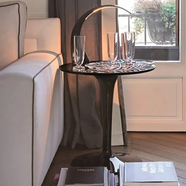 TipTop is a small side table, light and versatile, formed of a single base supporting the solid 48 cm diameter table top.