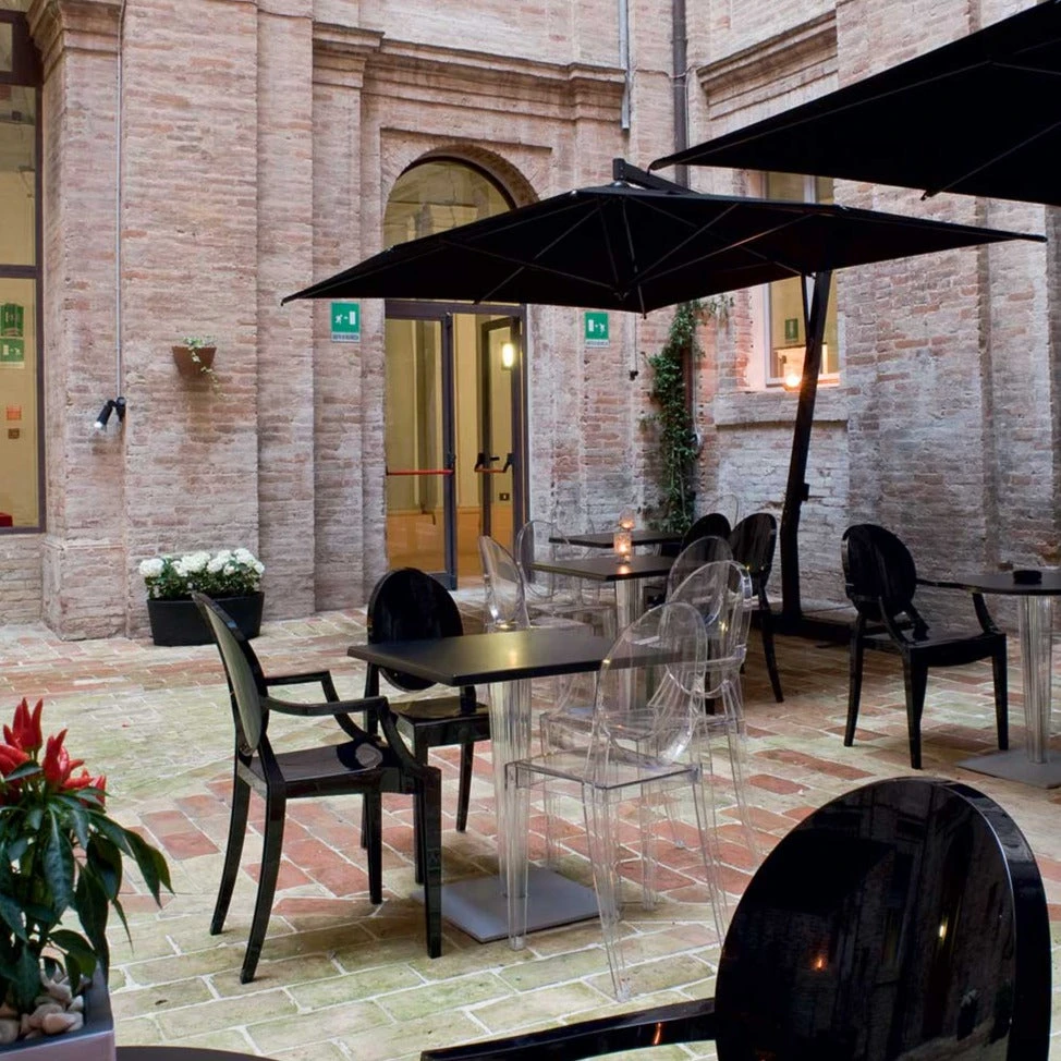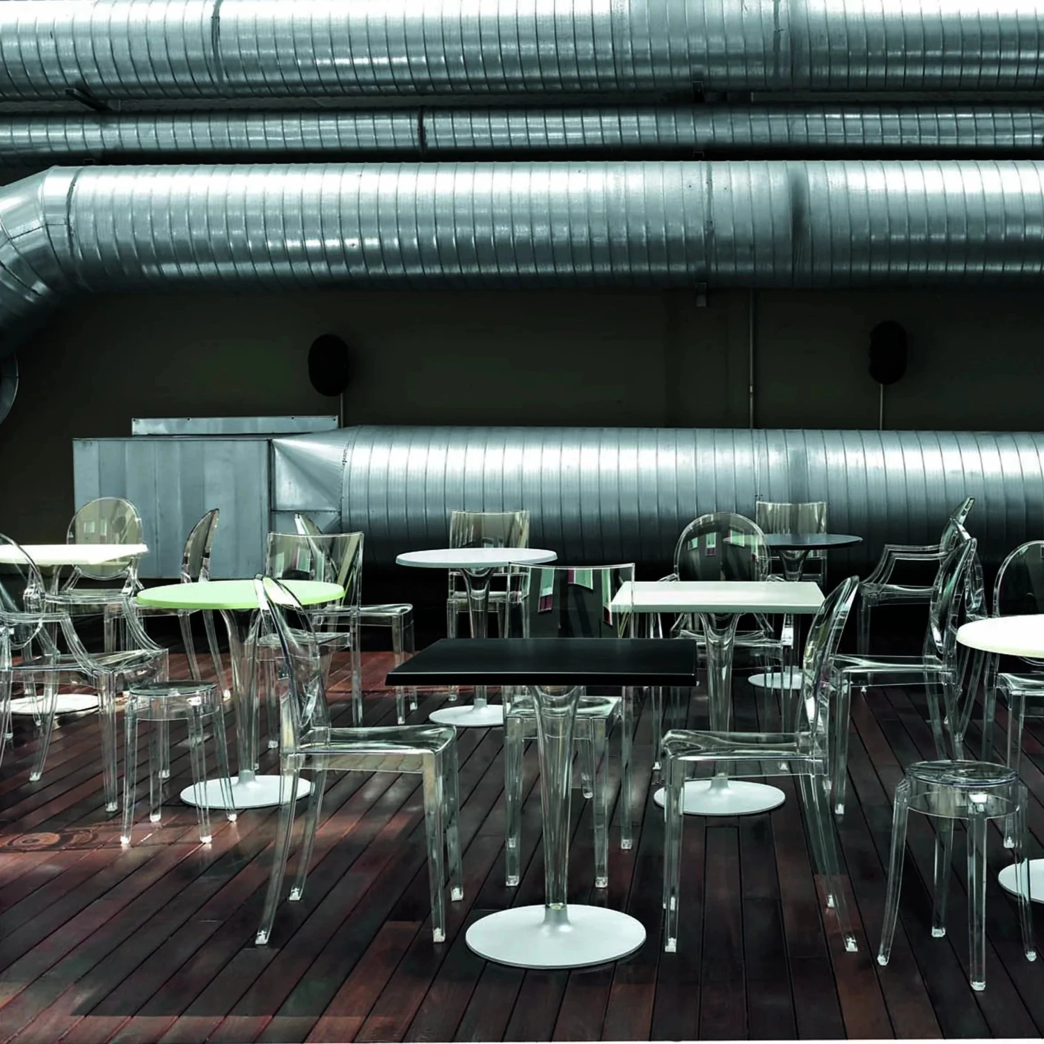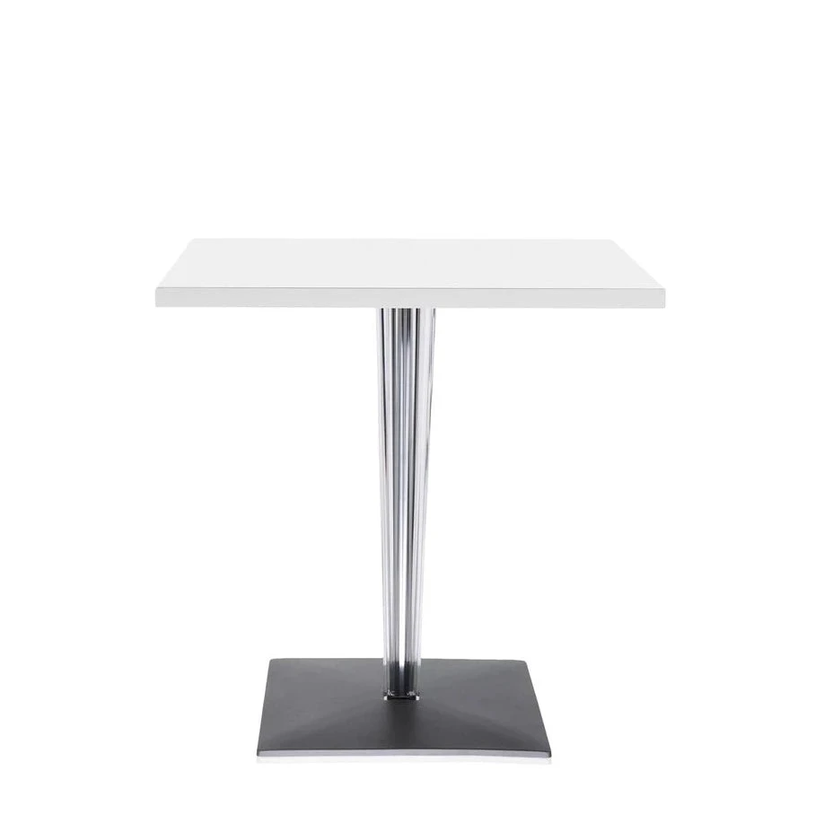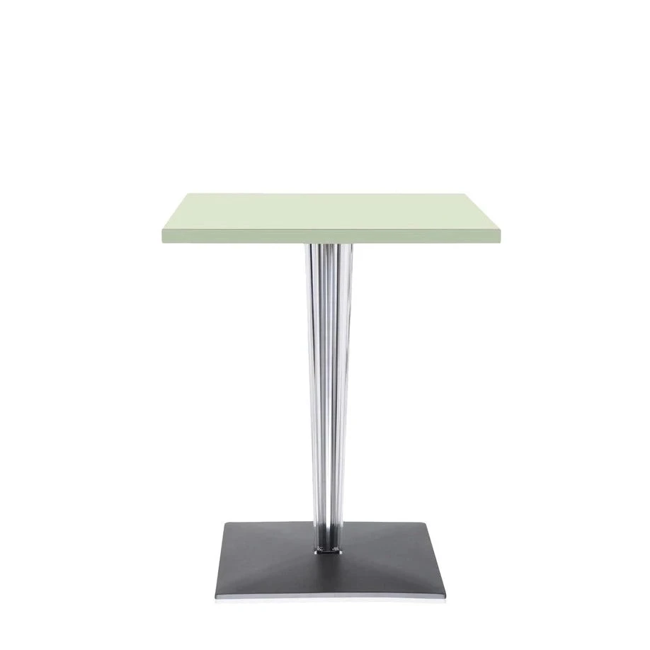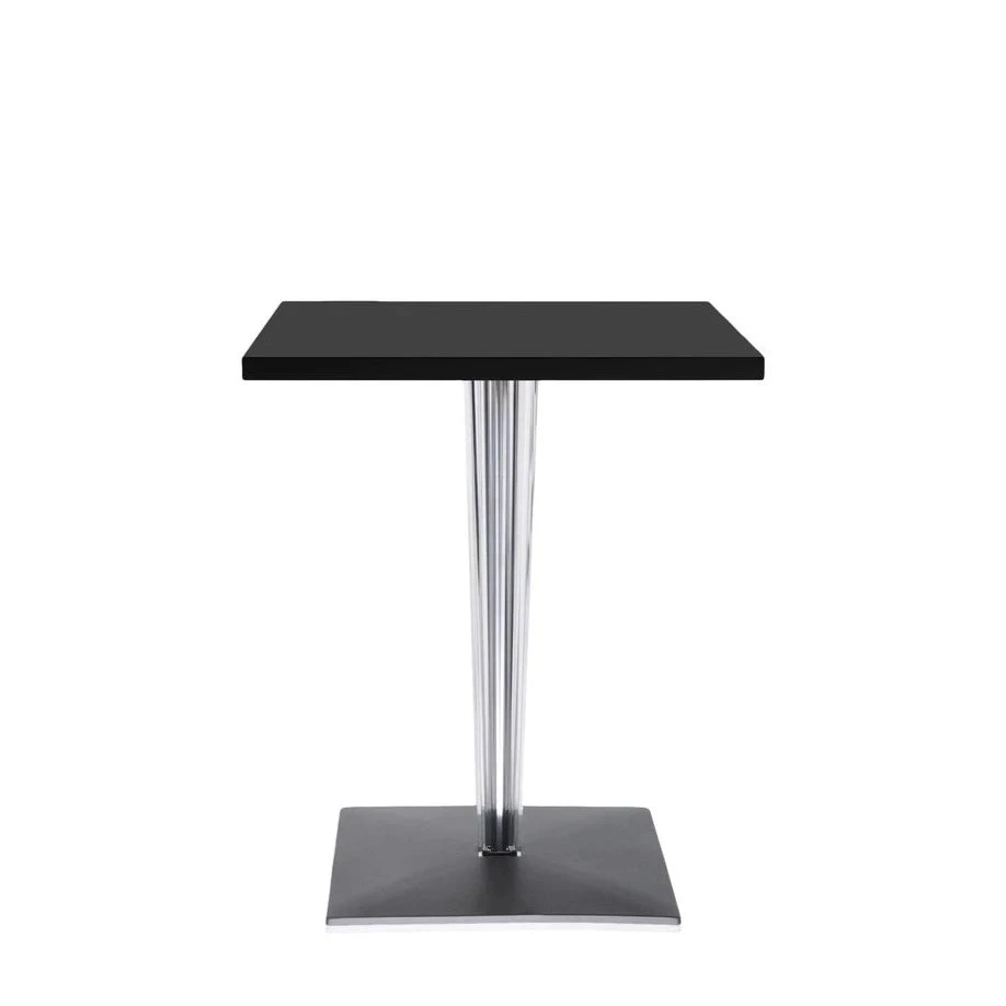 The Top Top table with a square transparent section with a multi-faceted surface and metal core.