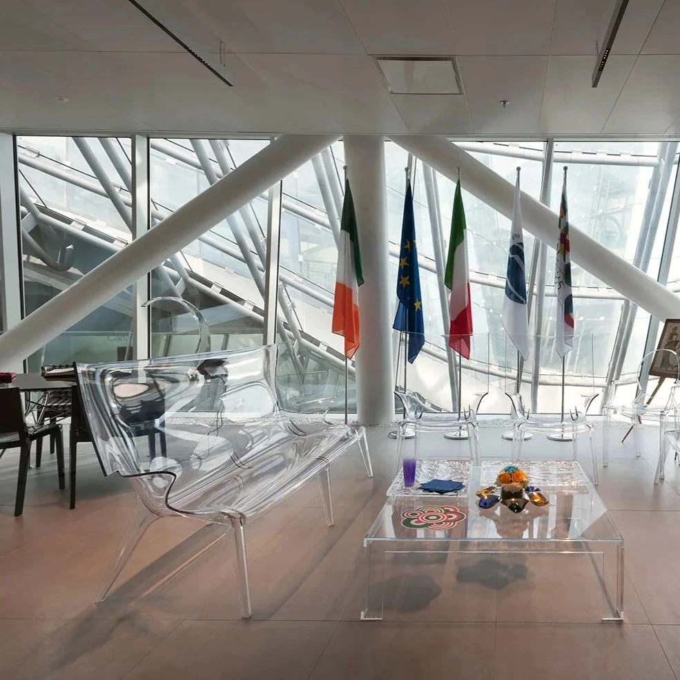 The Uncle Jack Sofa, designed by Philippe Starck, is the largest item made by Kartell from a single mould. This transparent polycarbonate sofa is the most daring example in the world of injection moulding technology Suitable for outdoor use.