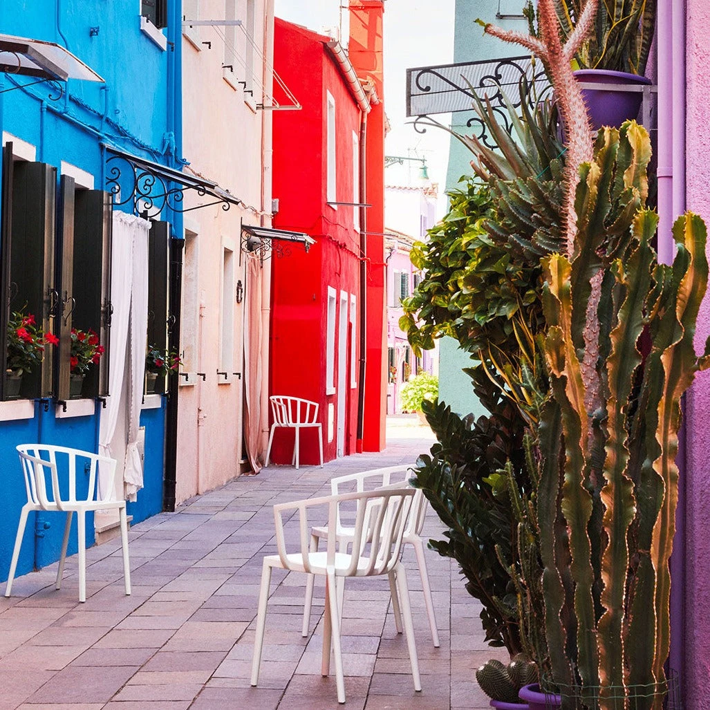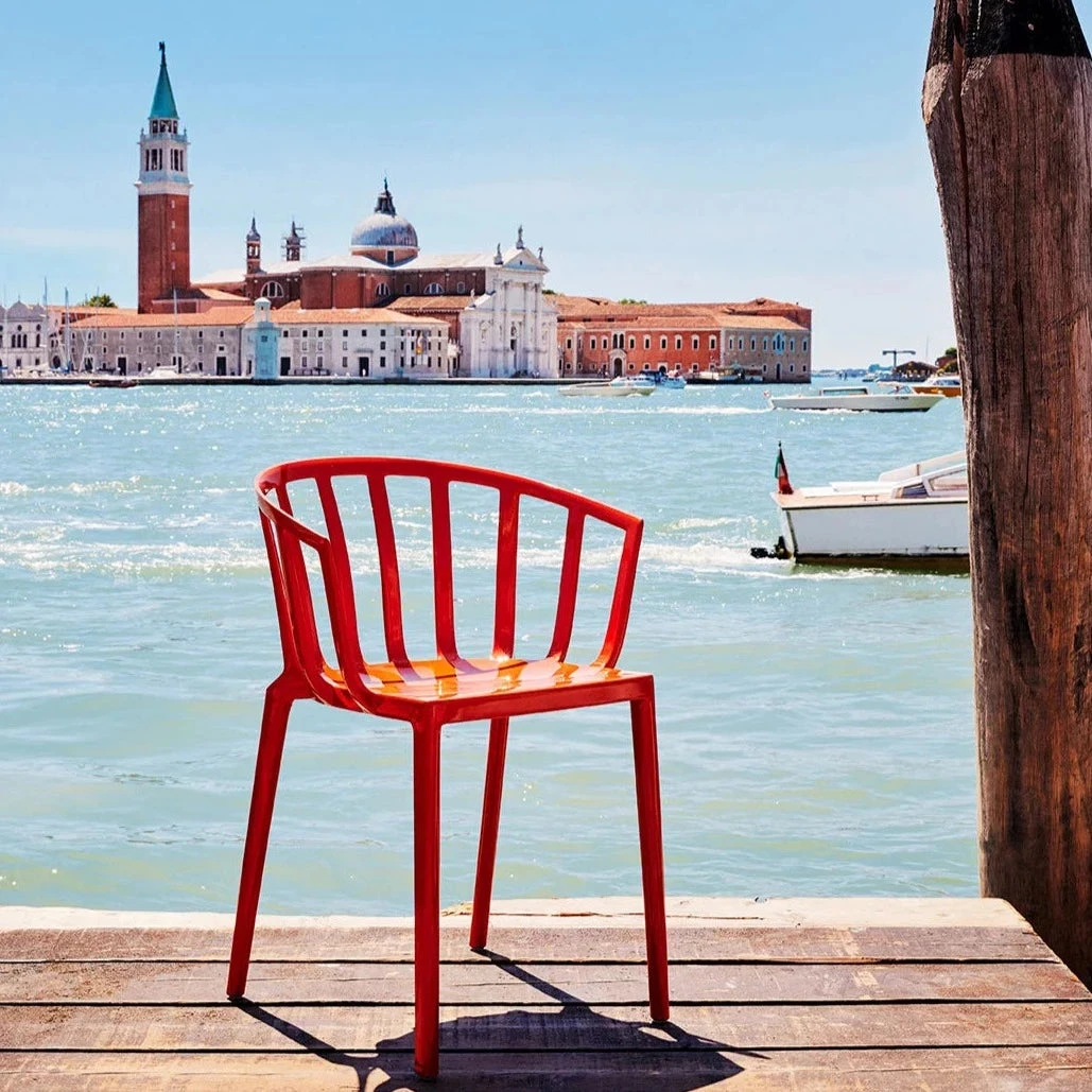 Philippe Starck – “A tribute to the city of Venice in a chair for both the table and the living room, which combines classic lines with comfort. Venice is suitable for both indoor and outdoor use and is available in six different glossy colours: white, grey, dove grey, sage green, rust and black , and two mat colours: white ,black.”