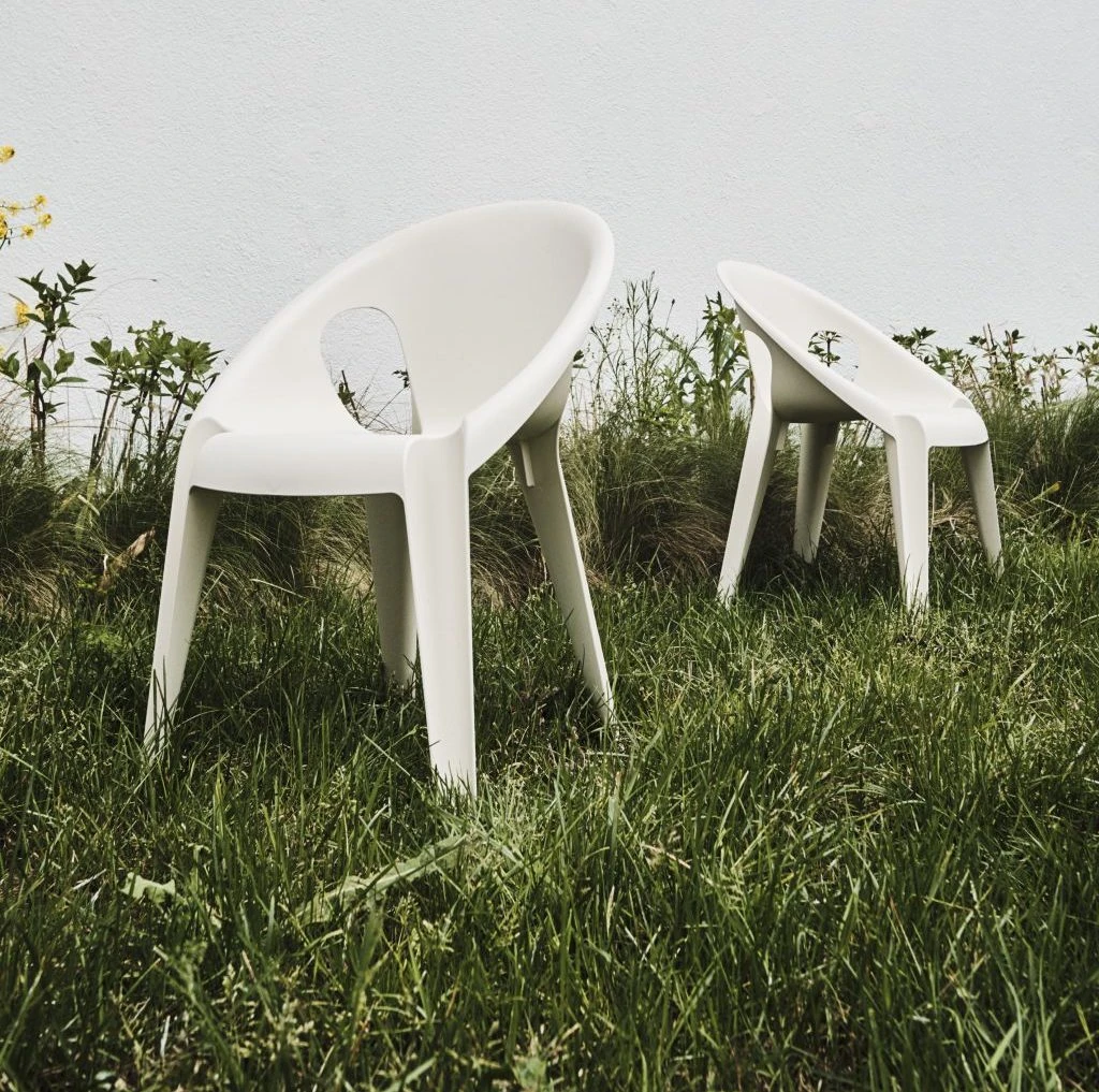 Made from recycled polypropylene obtained from the waste generated by Magis own furniture production and from that of the local car industry. The patented material excludes almost all virgin or new materials and can be recycled again 100% after use.