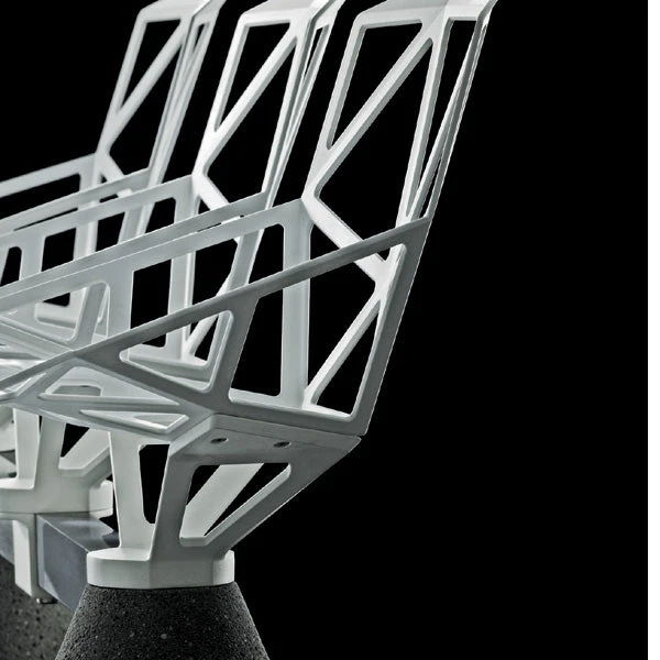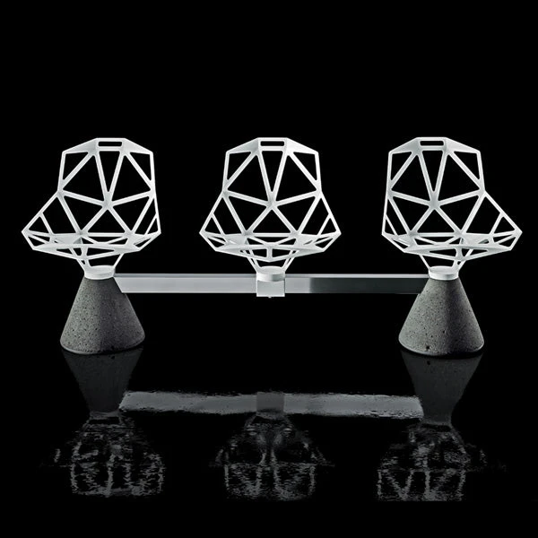 Designed: 2005 Chair One Public One Seating System Origin: Italy Seating system on bar. Material: concrete bases painted transparent clear, suitable for floor-fixing. Bar in anodised aluminium. Seat in die-cast aluminium treated with sputtered fluorinated titanium and painted in polyester powder. (Optional Parts: Concrete small table painted transparent clear. Cushions also available.Kit for floor fixing) Suitable for outdoor use. Flame-retardant. Size: H 80 cm, Seat H 46.5 cm, L 190 cm, Concrete Base Dia 35 cm,
