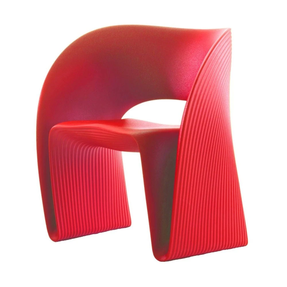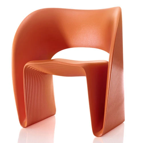 Magis Ron Arad Raviolo Chair Made from rotational moulded polyethylene in a single form is has a smooth inner surface with an outer contrasting ribbed surface. Suitable for outdoor use Raviolo comes in various fun colours.