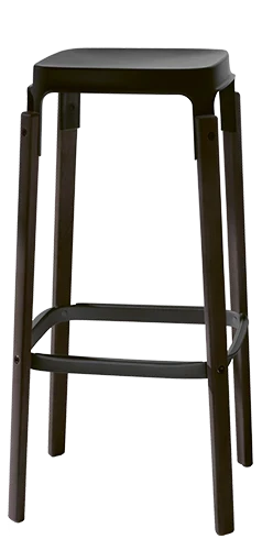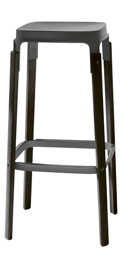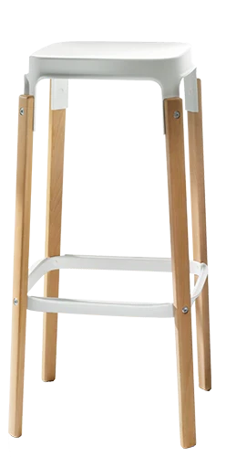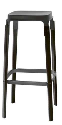 Material: seat and footrest in steel plate painted in polyester powder. Legs in solid beech (natural or painted), or in solid American walnut or in solid oak (natural or painted).