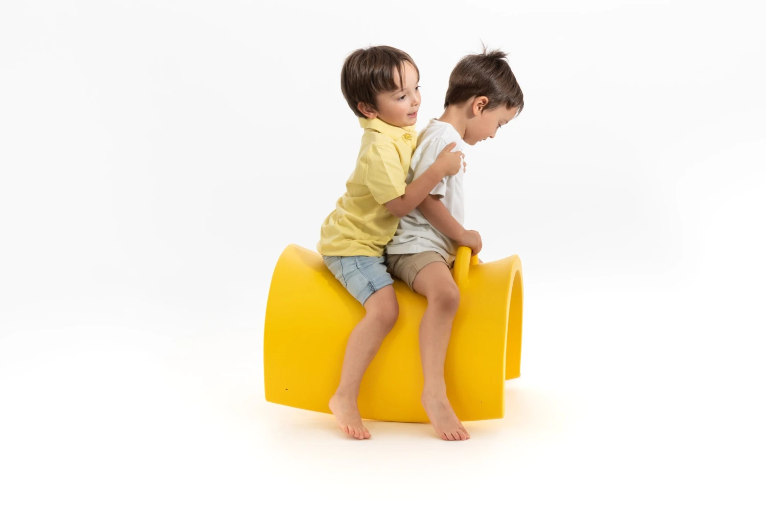 At first glance, Trioli is a colourful and decorative kids chair made of plastic with a seat height of 27 cm. After rotating vertically on its axis, however, it has a seat height of 37 centimetres. If Trioli is laid on the floor on its front, it becomes an outstanding rocking chair thanks to the rounded off sides with a seat height of approx. 45 centimetres – now thats versatility!