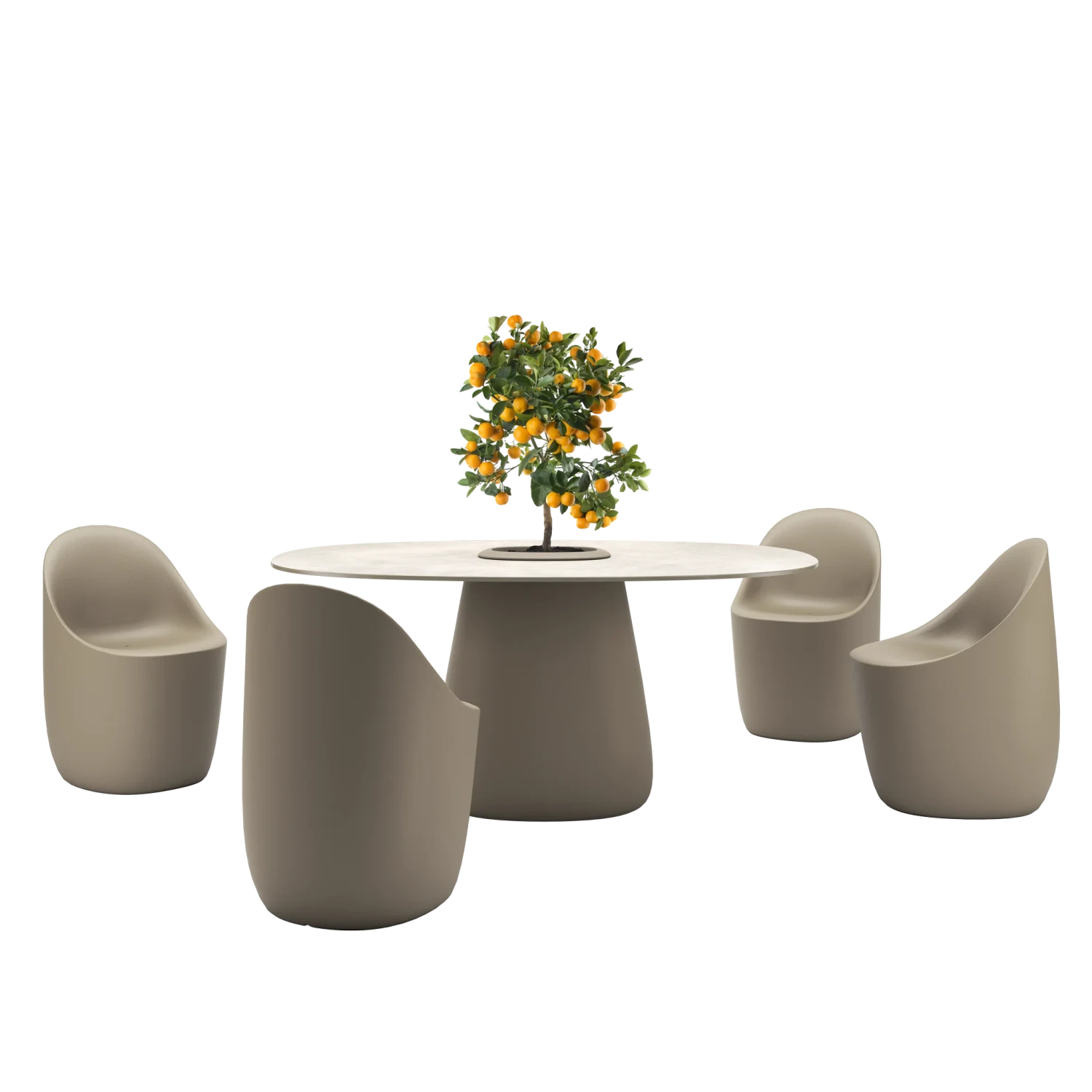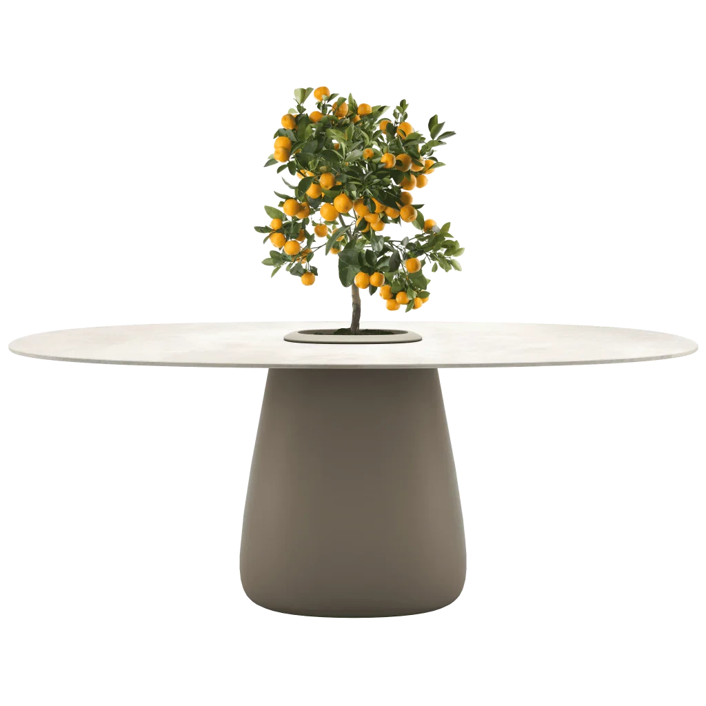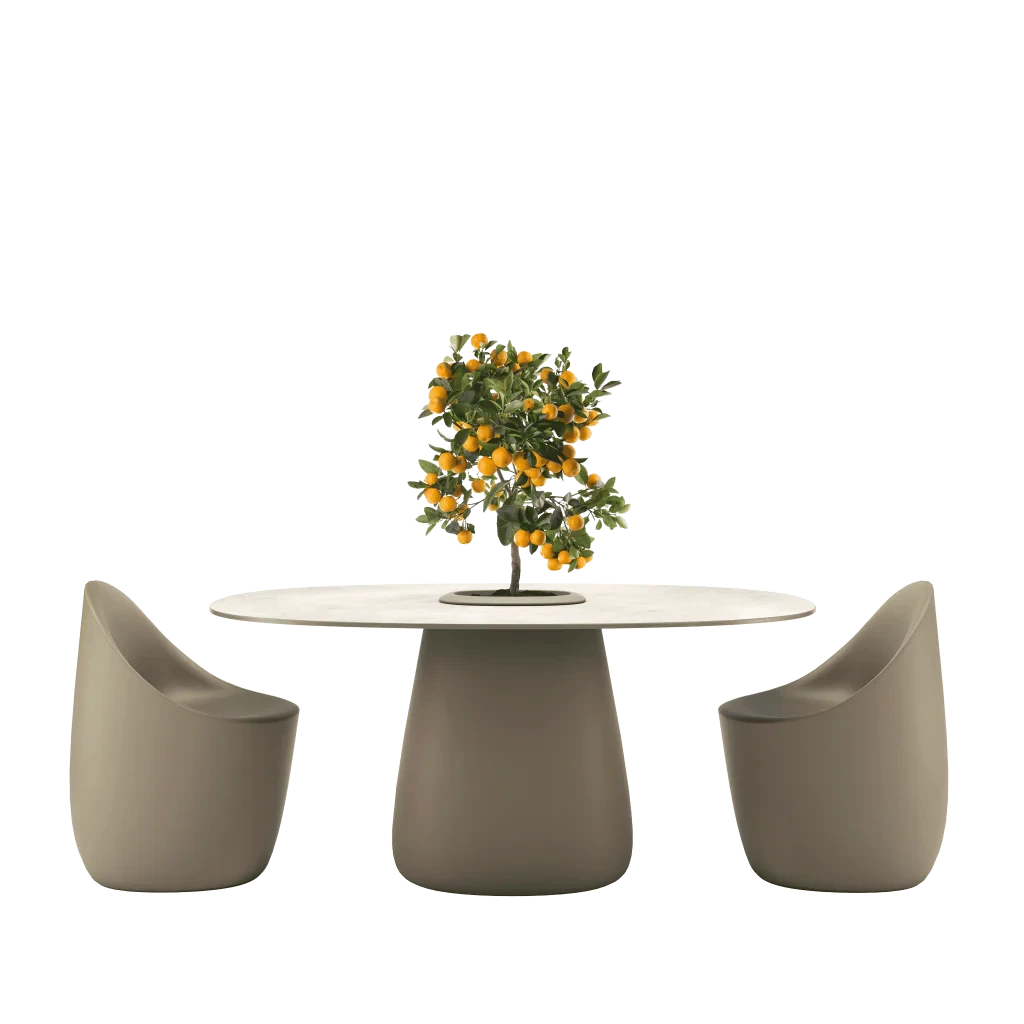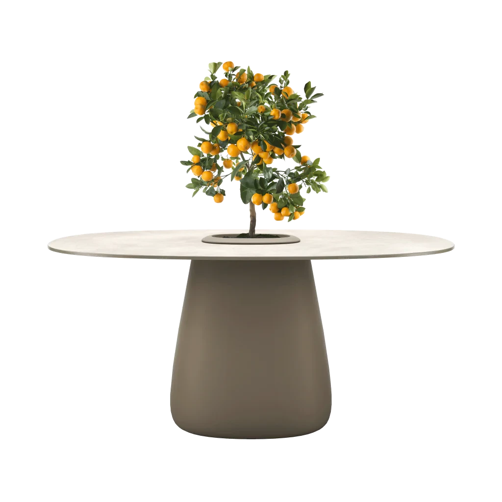 The Cobble Table designed by Elisa Giovannoni is characterised by a central base where you can insert a bucket containing plants or ice to keep bottles fresh. The thin table top is provided in materials suitable for outdoor or indoor use in laminam* stoneware.