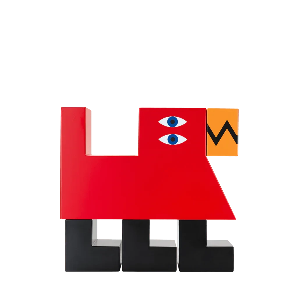 Animal shaped side tables made in lacqueredwood are included in this collection, all for indoor use only. DiscoverAziz, the red camel.