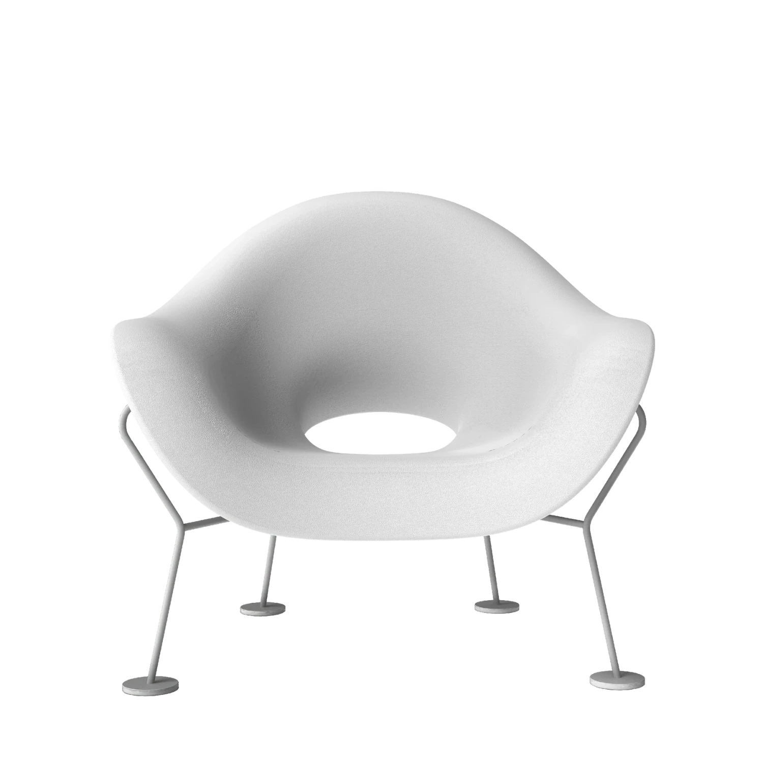 Pupa Armchair is an unbridled and light chair with chrome frame, suitable for outdoor environments.