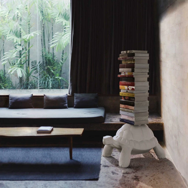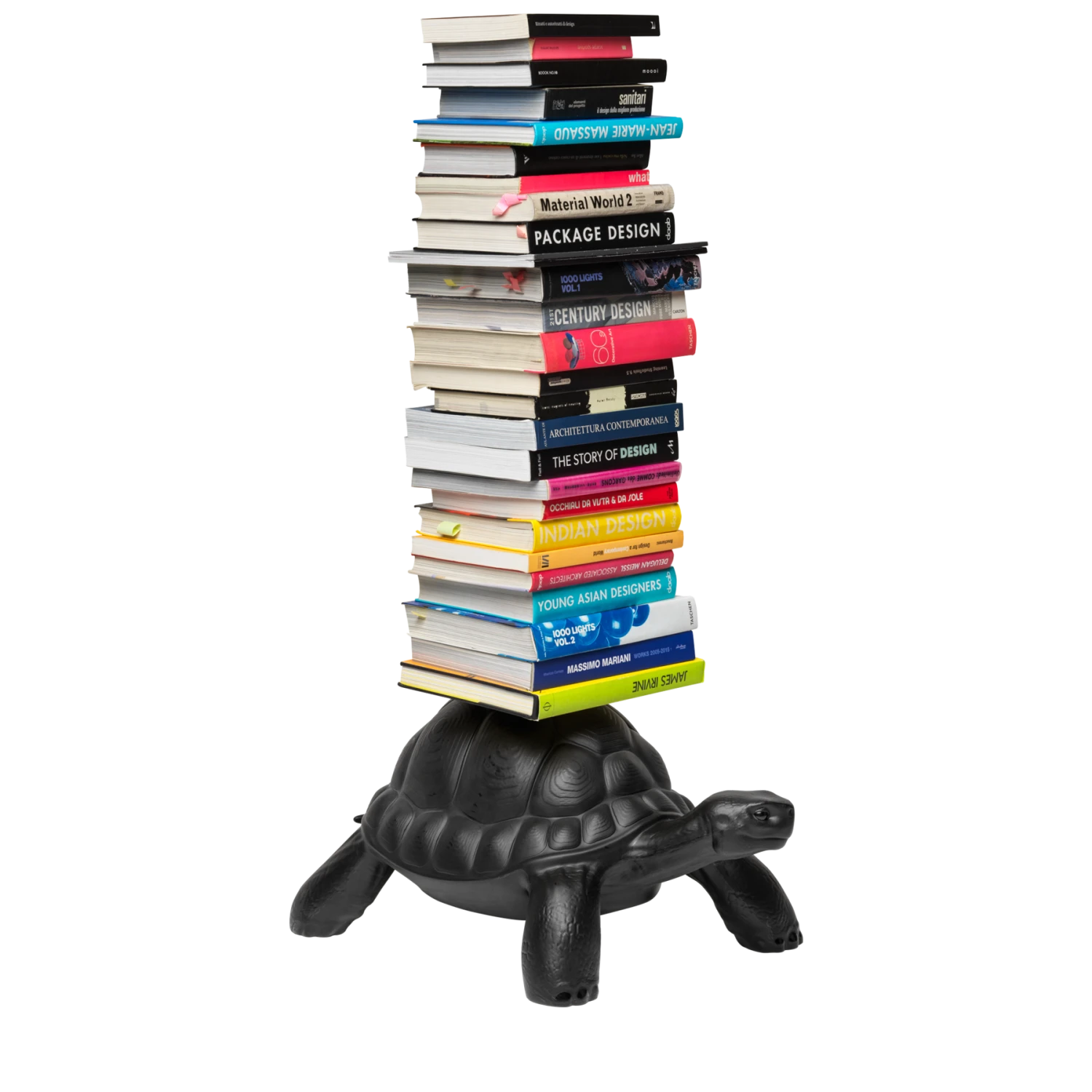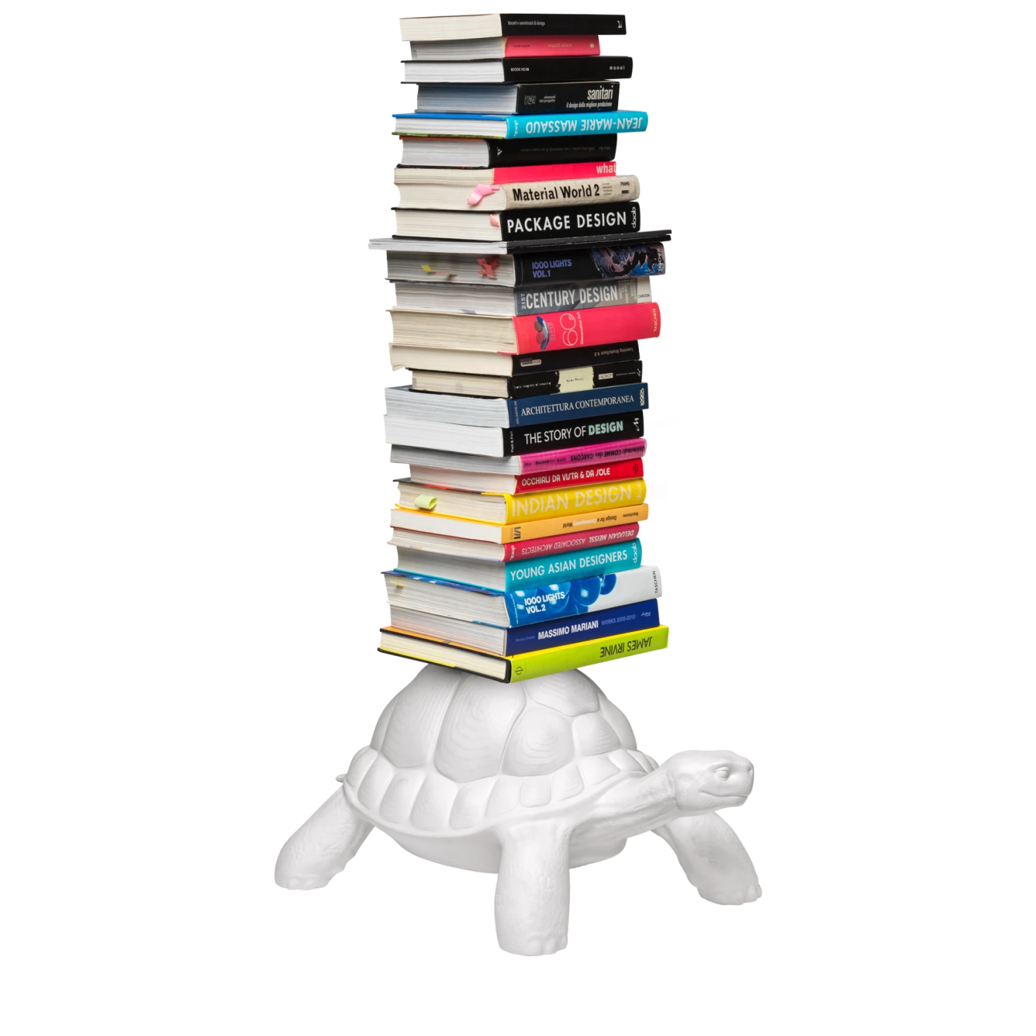 Turtle carry bookcase is carrying on its carapace a pile of your favorite books. Thanks to a metal support with three shelves, be sure they will be held tight! Once again Marcantonio is inspired by the natural world and its bizarre forms and he is able to translate them into artistic concepts capable of bringing sophisticated irony to our homes.
