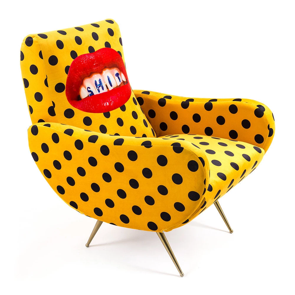 Add a touch of eccentricity to any interior with this Upholstered Wooden armchair from Seletti Wears Toiletpaper. Crafted from wood, this armchair has been upholstered with an eccentric design in vibrant tones. Inspired by the unexpected, this armchair is perfect for creating a statement in any interior.