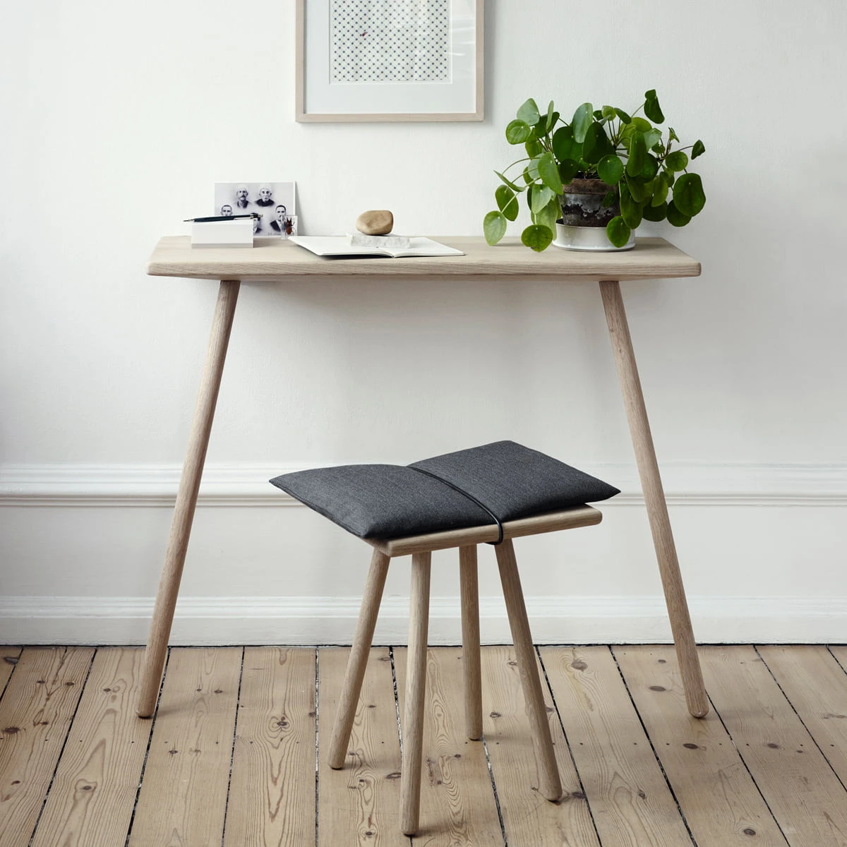 In a warm meeting between Nordic sensuality and Japanese minimalism, Georg Stool strikes a solitary pose. Georgs DNA is characterized by its slender wooden poles and rounded edges crafted from untreated FSC-certified oak. This version of Georg Stool has a linen cushion and braided linen strap which gives a monochrome and natural expression.