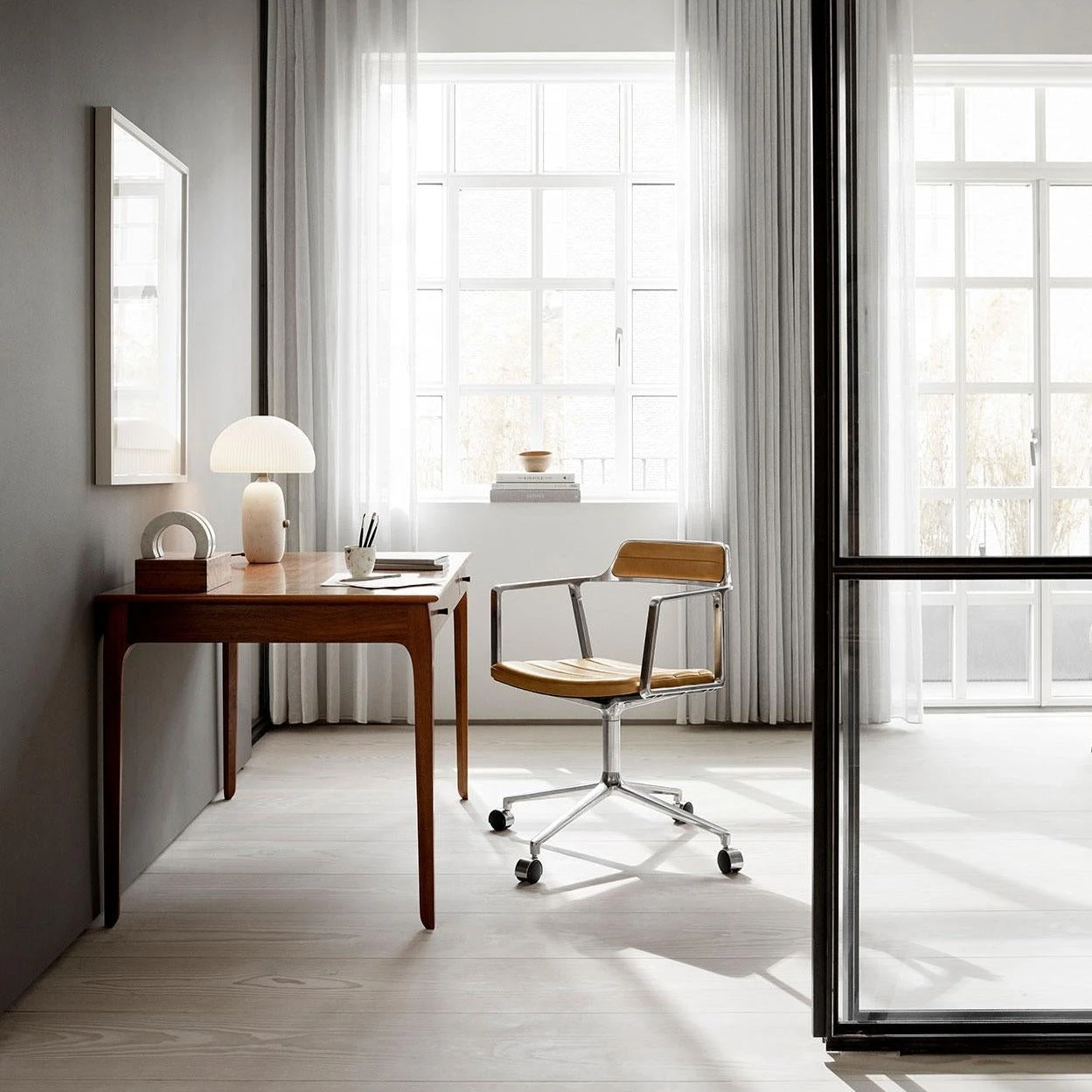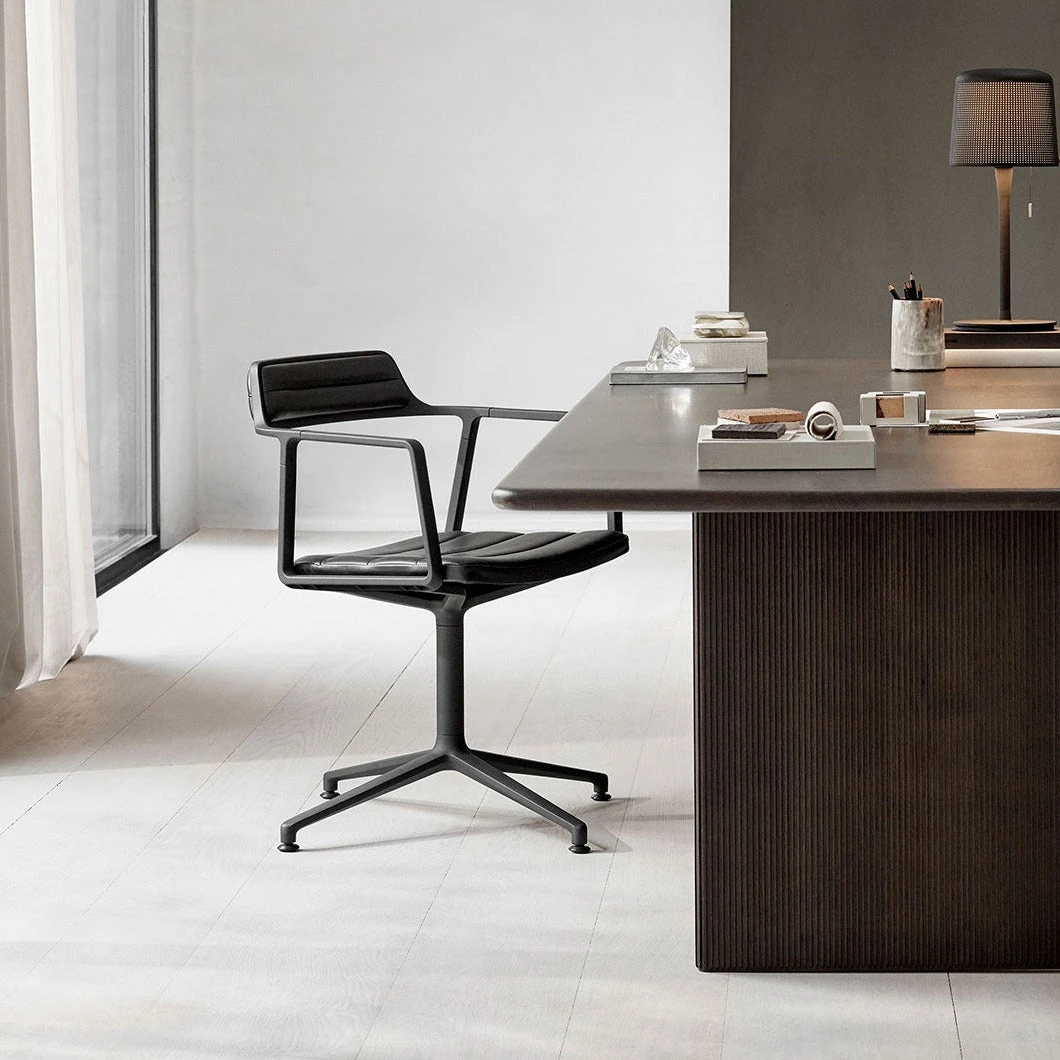 Born from the original Vipp chair, the Swivel chair is intended for the office and professional conference rooms that require extended seating time. Designed with a swivel base, this chair in motion will prove a flexible seating experience throughout the day.