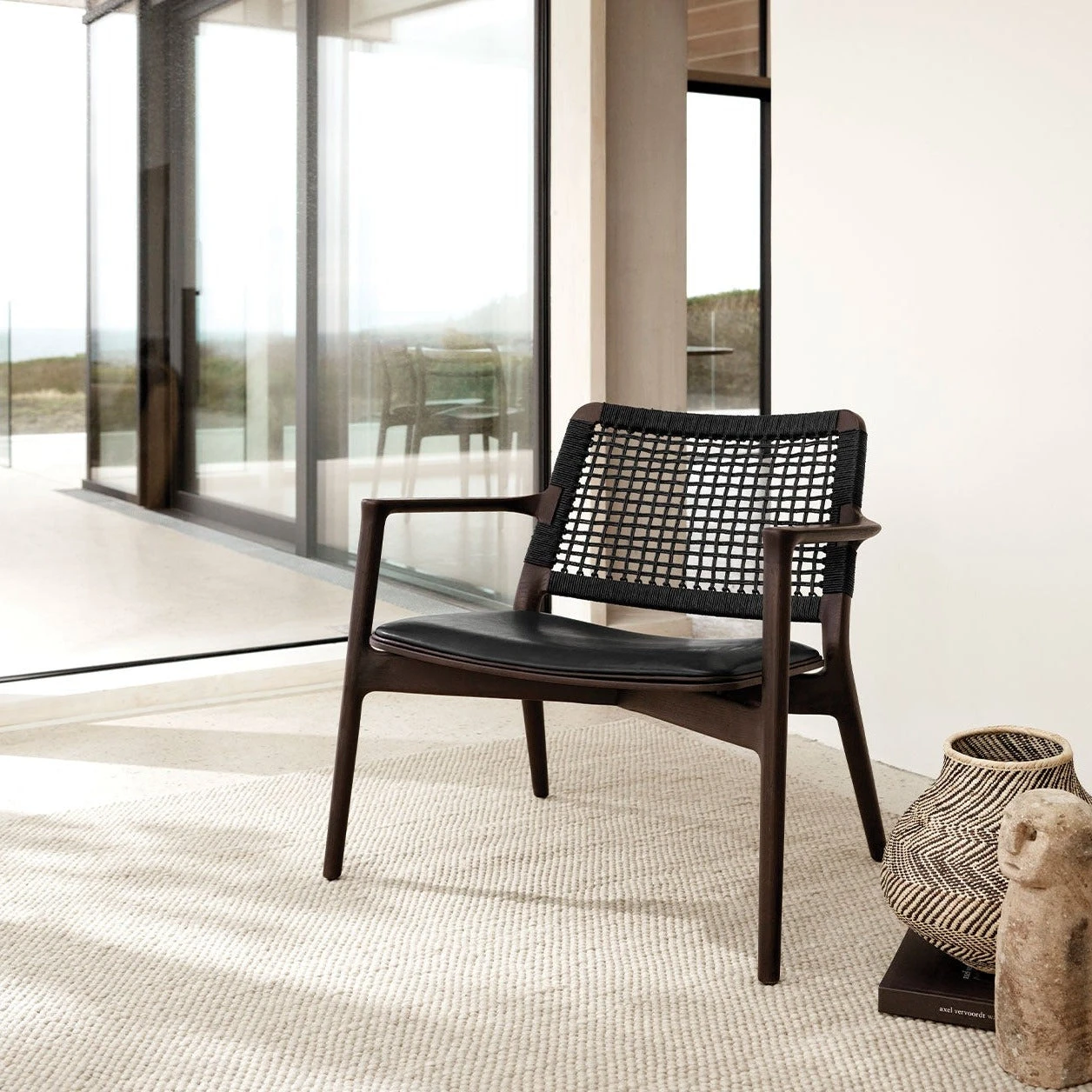 The Vipp Cabin Lounge chair is suited for the living room or lounge area. The lounge chair has a solid oak frame, which is softened by the addition of a padded aniline leather cushion and a backrest made of hand-braided paper cord.
