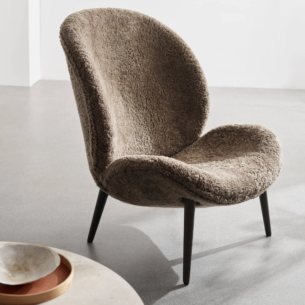 The shell of the Lodge lounge chair can be customised in Vipp’s entire upholstery range. Here shown in predefined variants with dark oak or light oak legs.